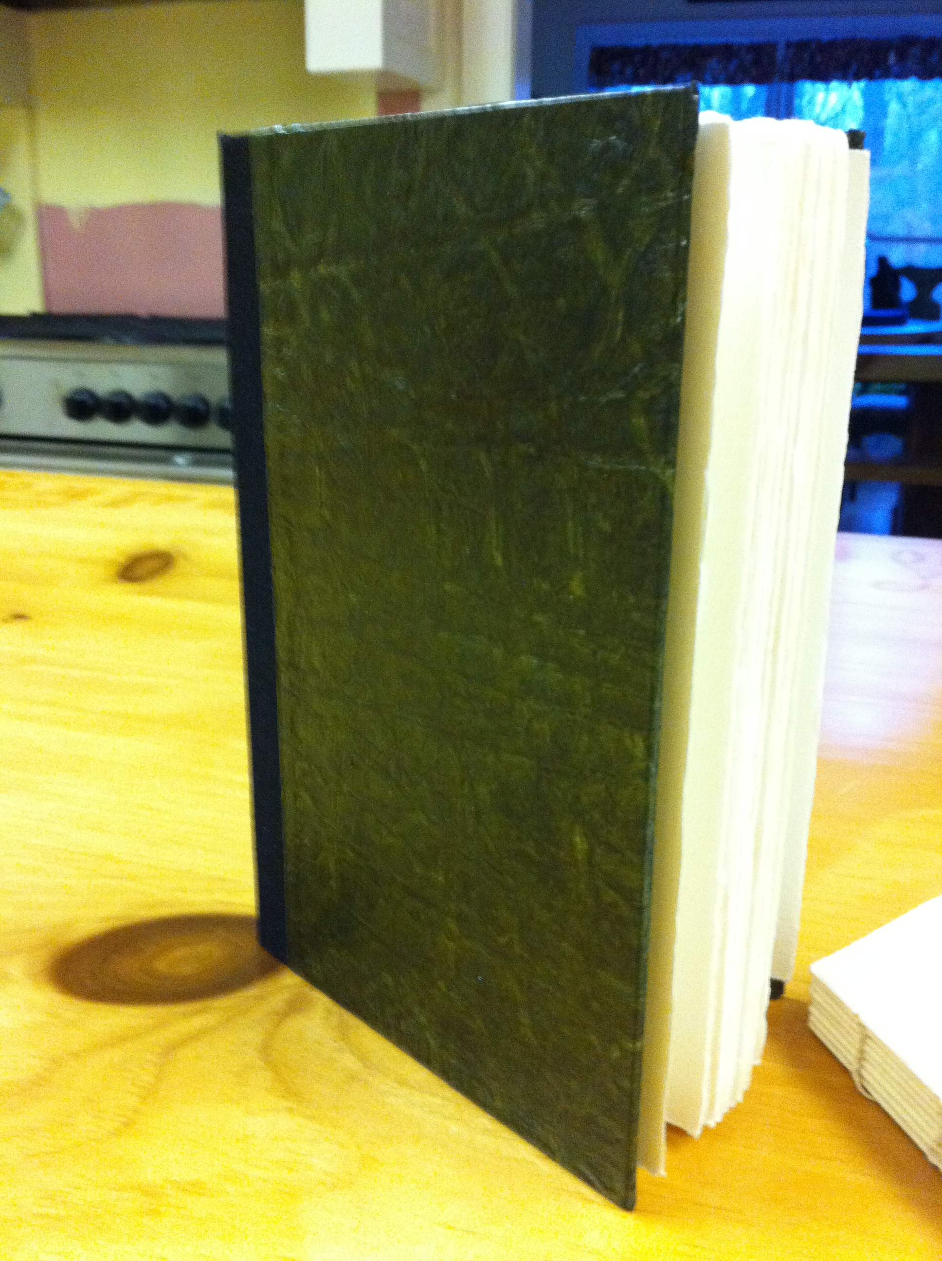 The next is a block I sewed myself from watercolor paper (I think it is Fabriano paper, or something along those lines). Both are covered in quite unique paper. The first is sort of like a lizard skin, the next is like alligator skin. Both are paper… but just textured. Very cool.