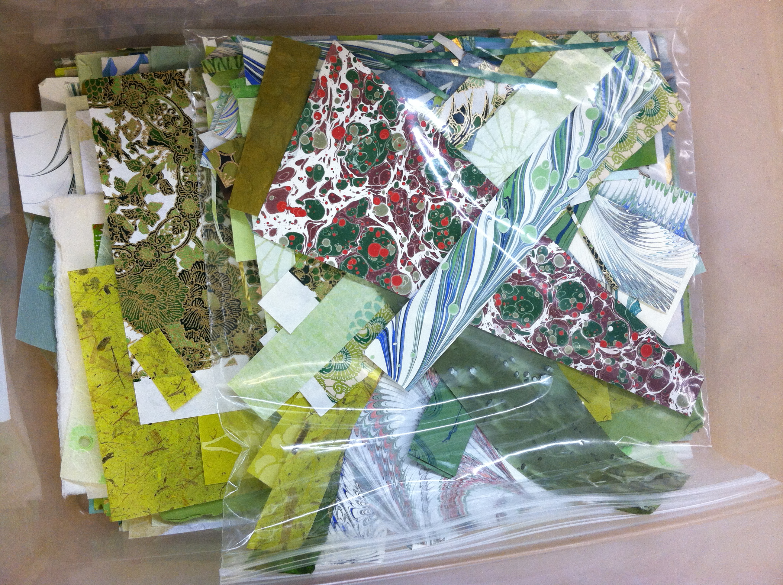 I moved into the light green box and found a great deal of marbelized paper made by my friend Mimi Schleicher. She is considered one of the premier marbelizers in the country. I am including a link of her marbelizing from YouTube (http://www.youtube.com/watch?v=jlRulPWPZ6g) Just in case you want to see how marbelizing is done. Her papers are all handmade and copyrighted for her designs.