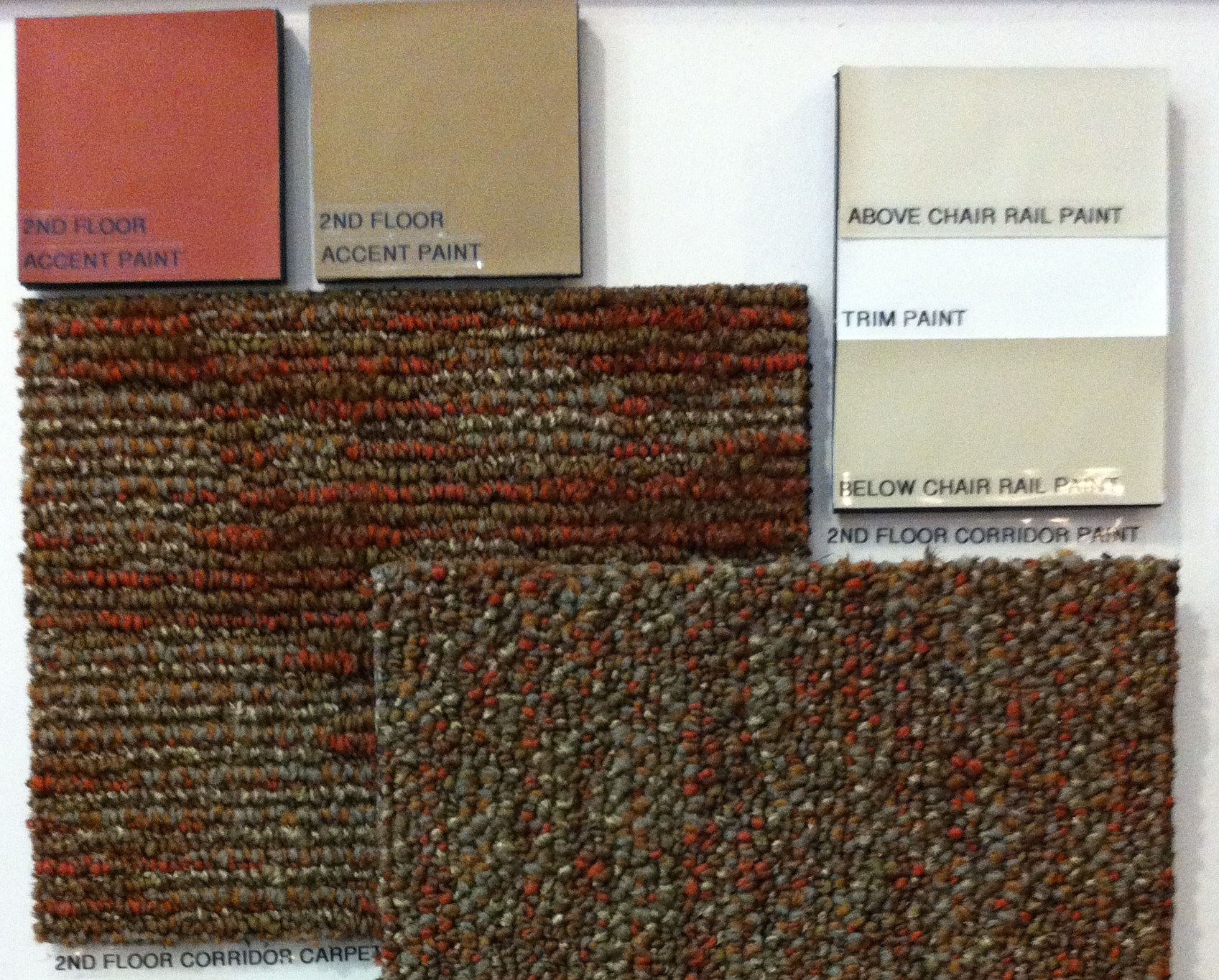 I am working on a second piece for OBT, and this one is for the second floor. As you can see here the color board the interior designer established for the floor.