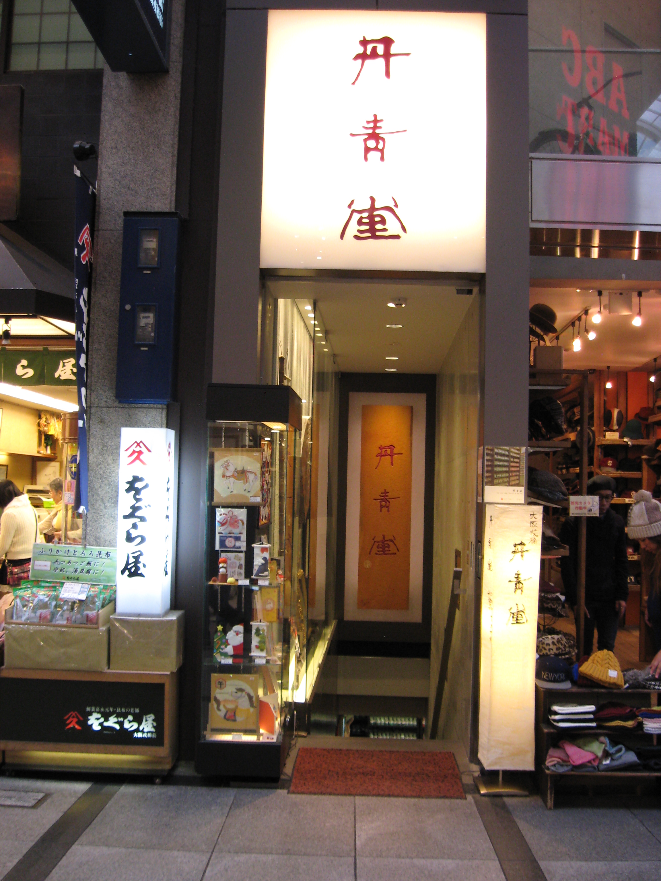 Behind the glass case to the left of the store entrance you can see paper crafts and calligraphy samples. Very simple, very nice. So we went down the stairs.