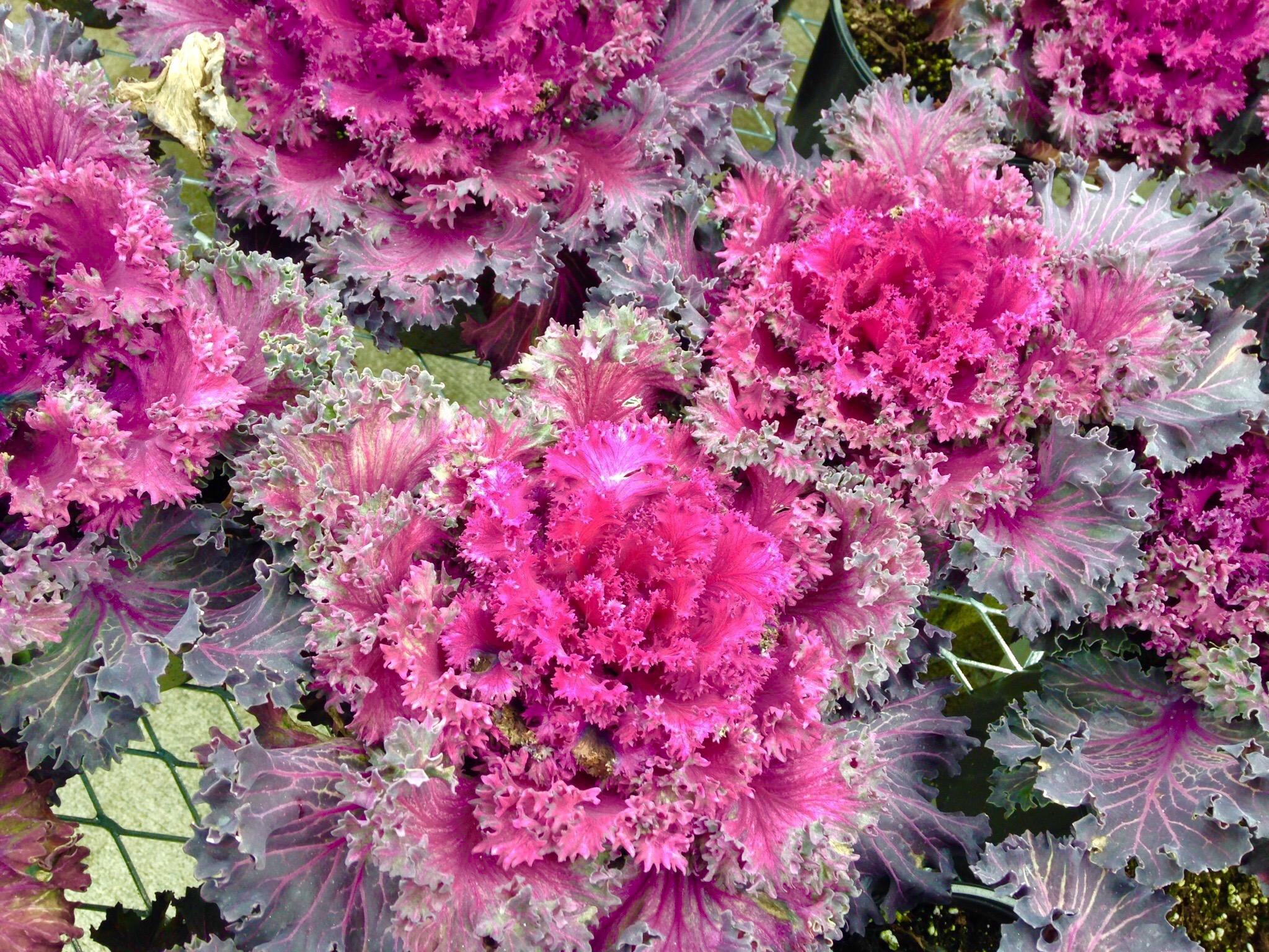 The color and texture is amazing. I see it as organic and hearty – and yet when it gets nipped by frost it can look like a science experiment gone awry. This shot was taken in an office park, the landscaping crew had just installed this grouping as the new rotation for the season.