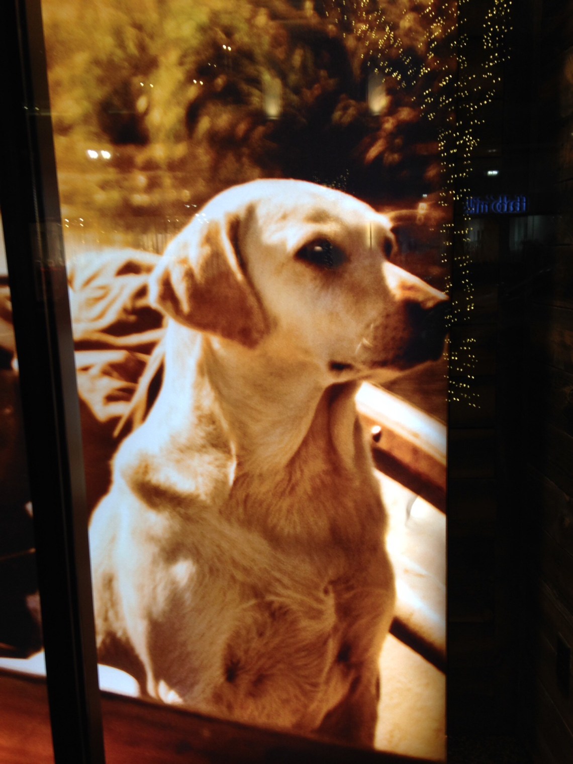 The lovable, loyal dog. This is a photo from a store window where they were advertising outdoor gear. You can see in this dog’s eyes the focus given to the outside world.