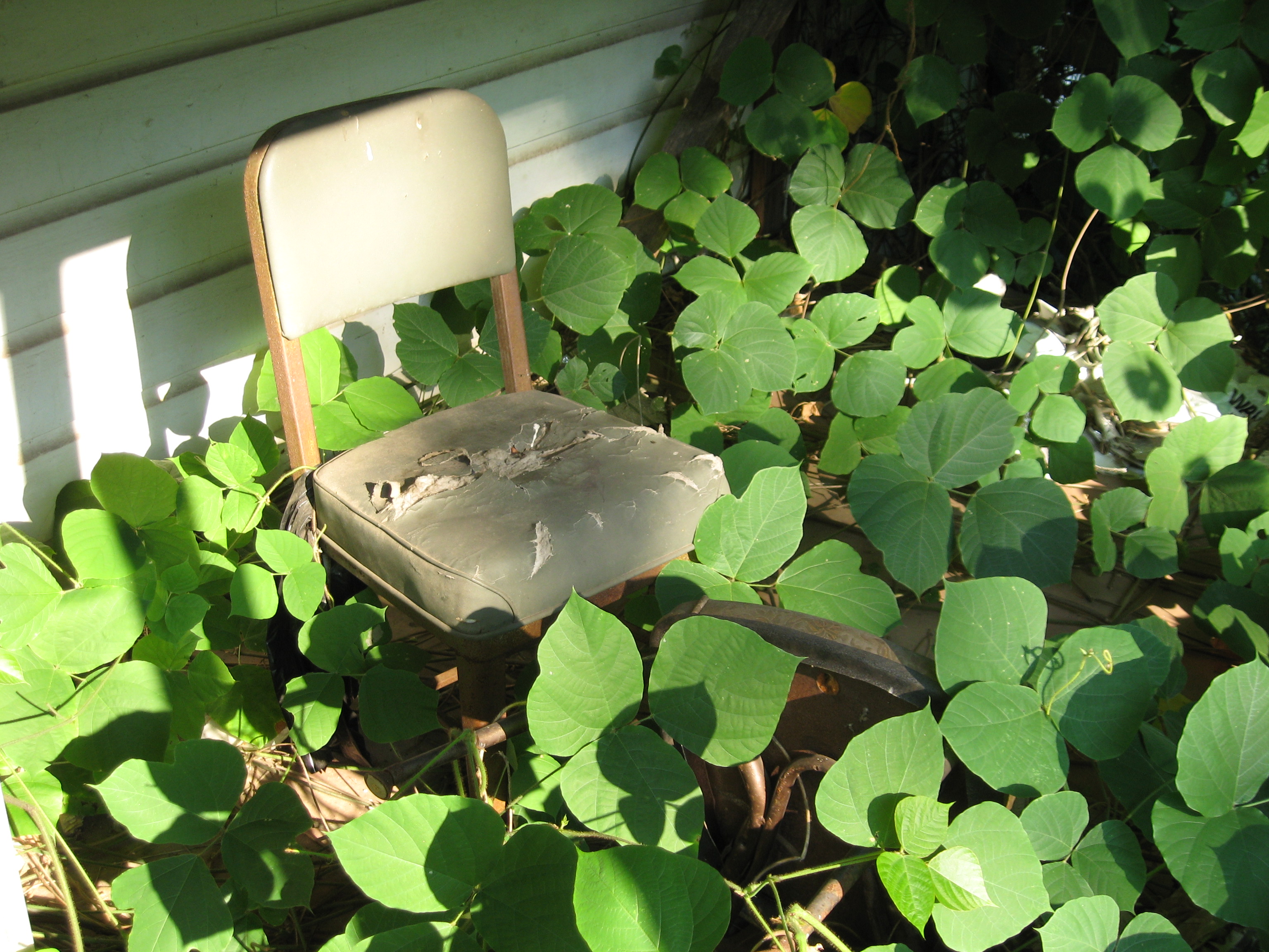There was a house around the corner from us that was being engulfed by kudzu. For those of you unfamiliar with kudzu, it is a Japanese plant that was brought to the U.S. during World War II to protect the unplanted soil from erosion. Kudzu grows VERY quickly, and will eventually surround, cover, and choke out all it engulfs. It is planted ot help protect the soil, and yet ends up killing everything it covers.