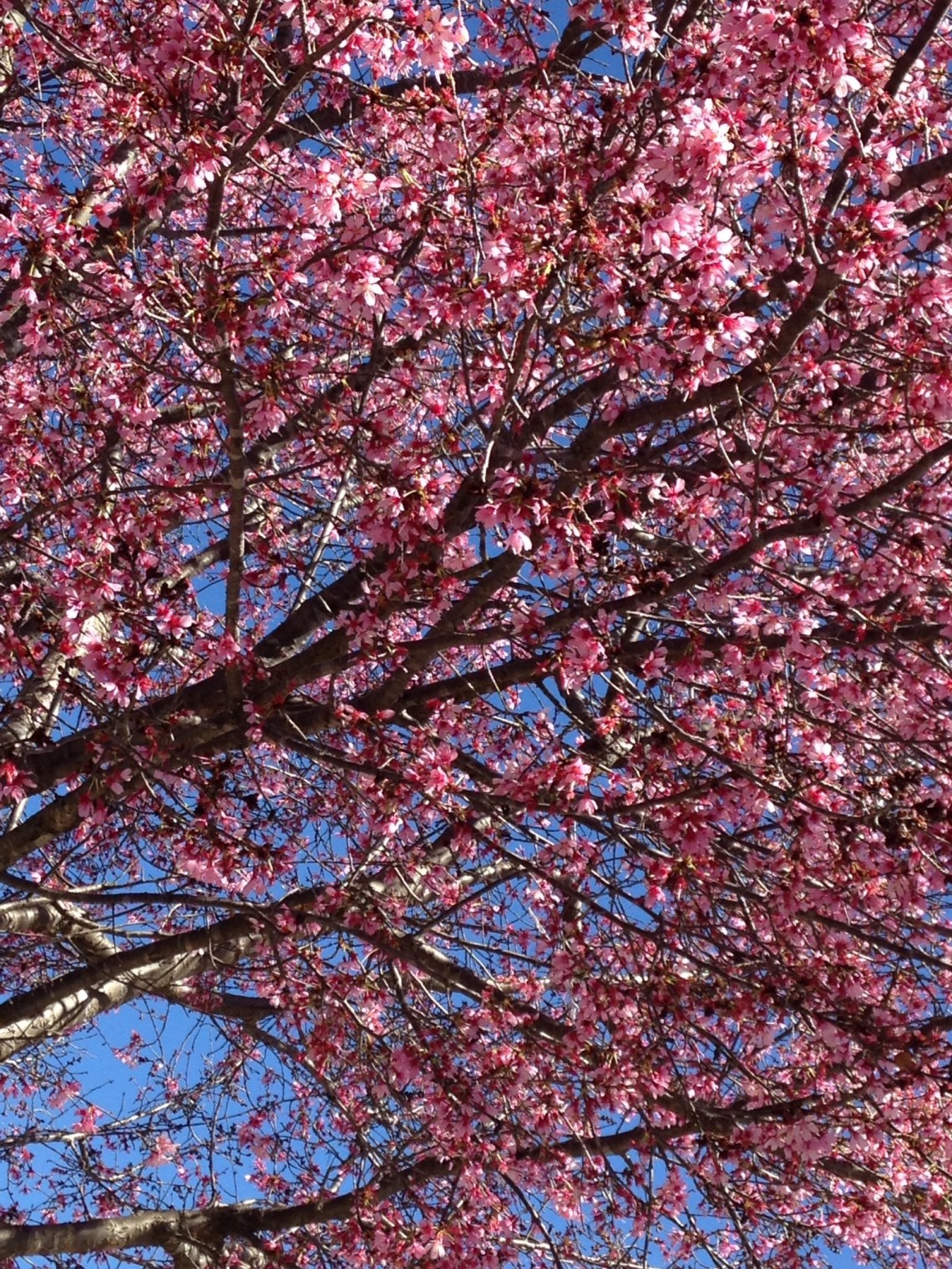 I live in the Southeast, and here Spring is a glorious time of year. Mother Nature sprouts beautiful colors and spends each moment of daylight reminding us of her glory and splendor. All I did was look up when I was on my way to the Dry Cleaners, and this is what I saw.