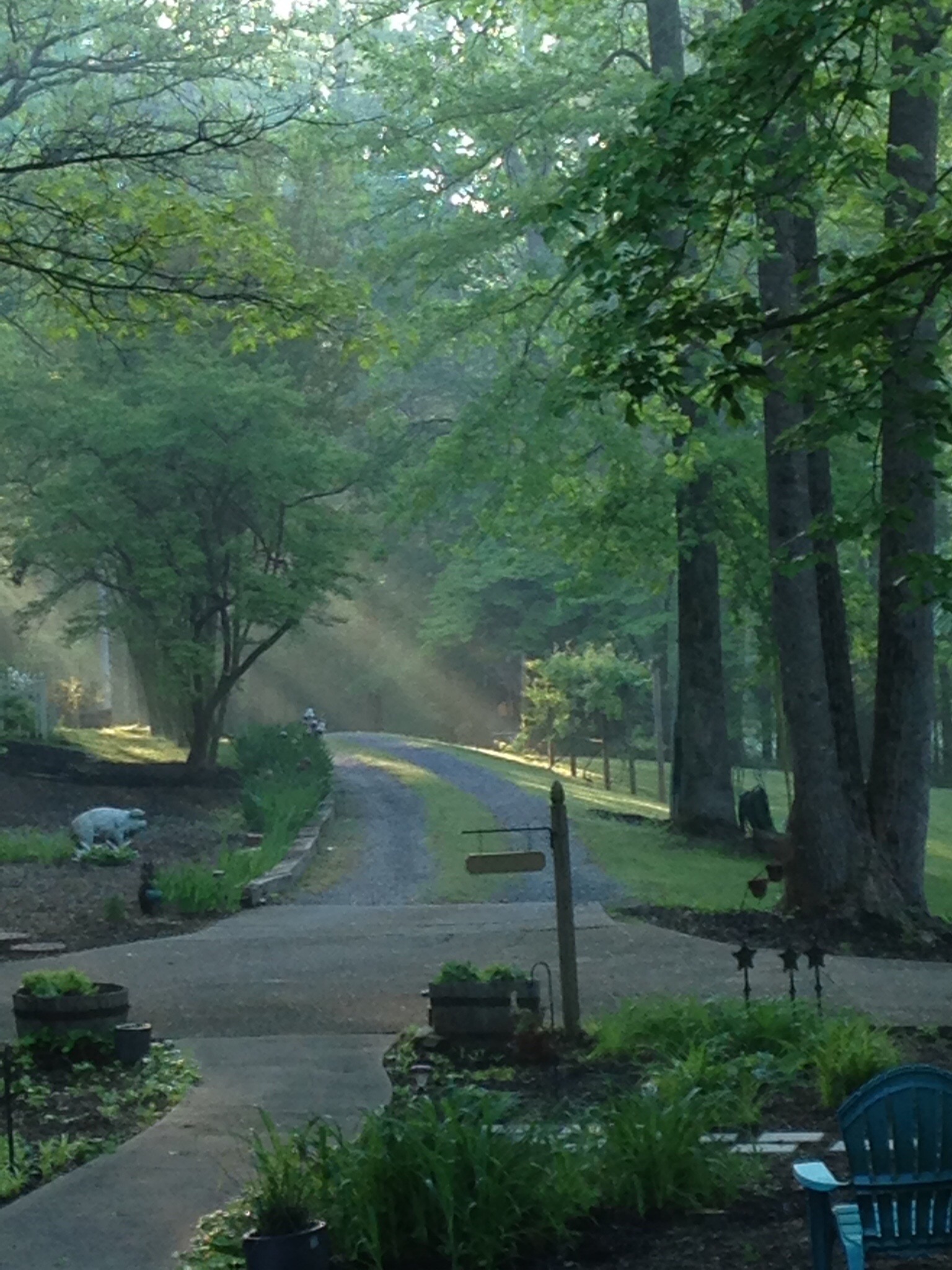 This is our driveway…I get to see this view everyday. When people visit they always comment on how peaceful it is where we live. And I TOTALLY agree. I could not put a price on how much I value being able to sit outside in my pajamas and watch our cats play in the yard. We are truly blessed – and we know it.