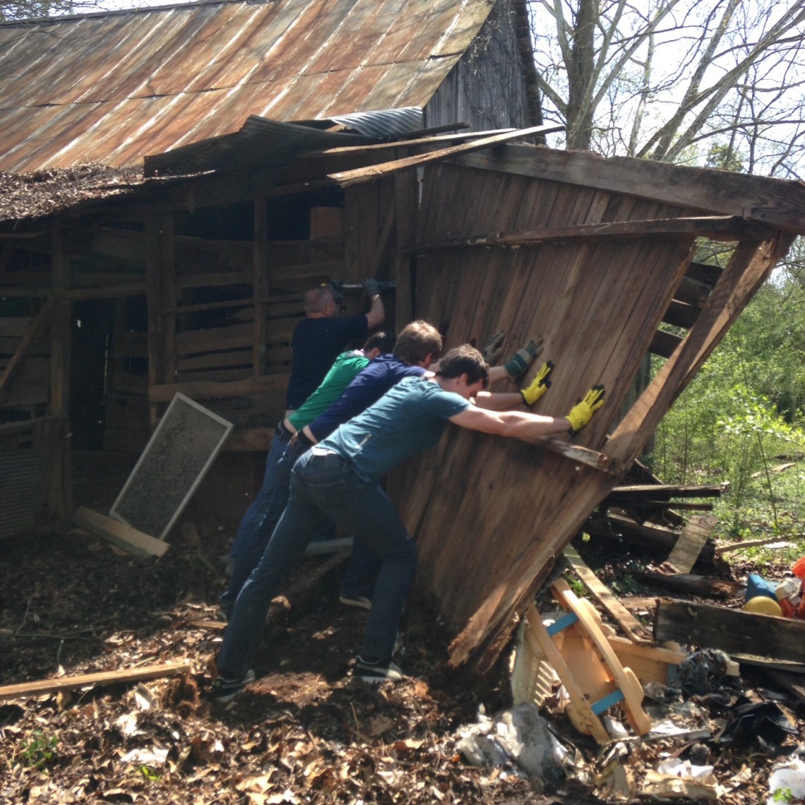 What I like about this shot is that it reminds me what can be accomplished when everyone works together towards a common goal. We needed the strength of youth for this project, and they needed the wisdom of my husband and father to engineer the take down. Together they did it. Men being men, working outdoors and tearing things apart. The night before everyone talked about how we were going to do it. Ideas were thrown out, negated, debated, and by morning there was still no clear plan. Trial and error was our comrad in arms that day, with a dash patience and a strong dose of cooperation on top. In the end, we were successful.