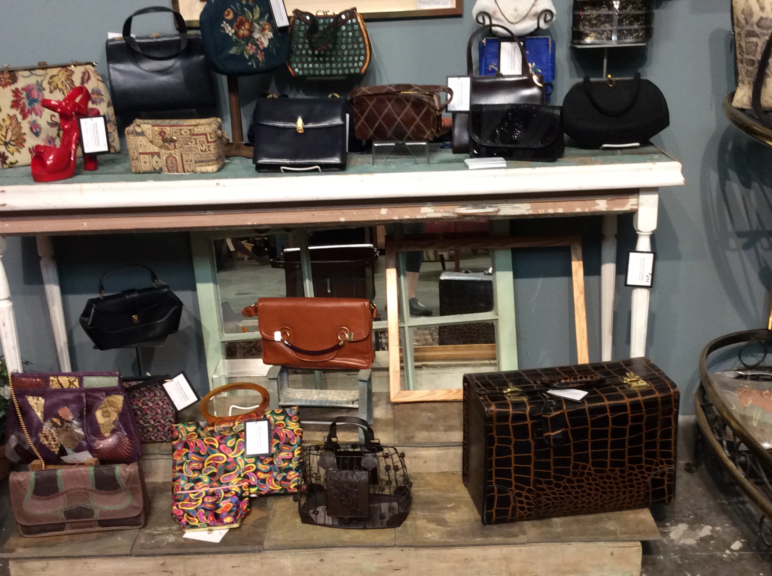 Vintage handbags and clutches…how cool are these? Think of the stories these heirloom items could tell, if only accessories could talk! But as women, aren’t we glad they don’t? Our secrets, our items, our wallets, and our non-descript bottom of the bag miscellansous “stuff” is all safe in the silence of our purse.