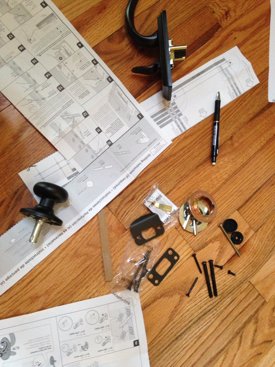 Yes, there was a choice use of vocabulary words…and several moments when I wondered if he was the reincarnation of a mid century sailor. Some of the items that came with the new door knob did not work in our door – more colorful verbiage. But he kept at it. He even invented a couple new explicatives to exclaim as the hardware did not comply. After all that, he read and re-read the instructions…and re-read them, and re-read them.
