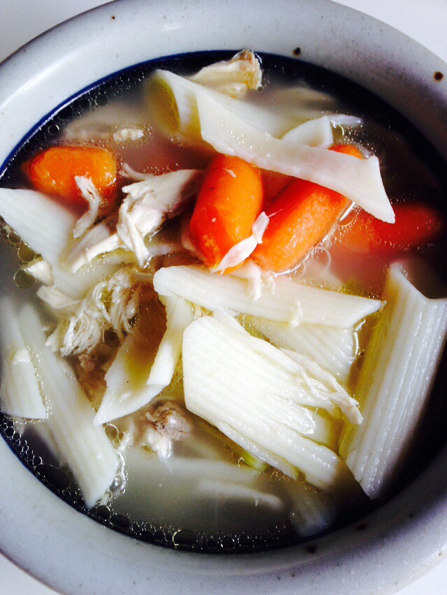 Soup is the magical food that makes me always feel better. There is something in the combination of hot, “chickenie” liquid, noodles and fresh vegetables that clears your sinuses and soothes your soul. I am thankful that my husband is such a good soup maker, and can create it on such short notice.