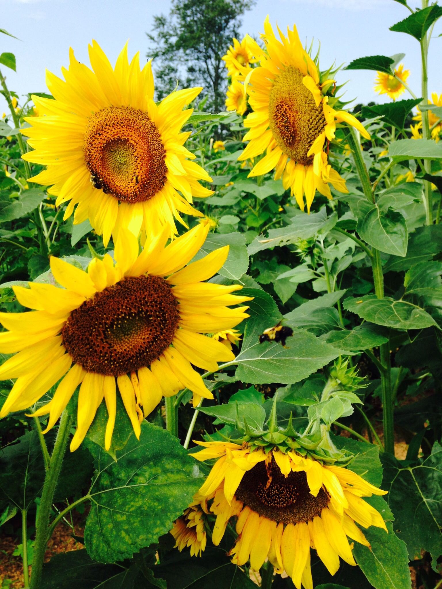 Our neighbor grows sunflowers. Each season we drive by and comment on the beauty of the yellow fields. On this day we stopped to take pictures. Unexpectedly, the flowers were covered with bees. I had a bit of panic as I am not a fan of bees, and my husband is allergic to the point of not being able to breathe if he gets stung. So what seemed like a good idea caused a moment of panic. Yet we navigated the rows and snapped a few shots.