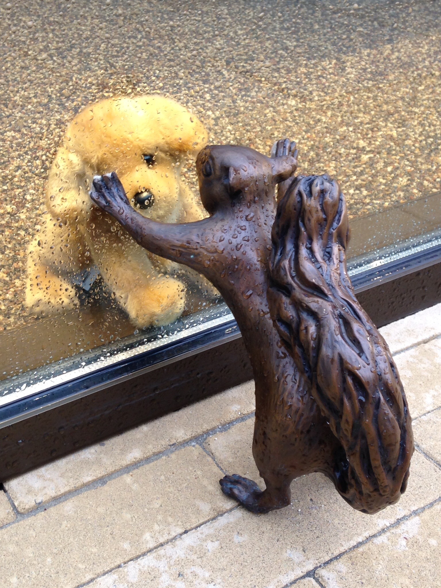 That’s what I hear coming from this squirrel I spotted outside a local shop. It’s actually a statue that sits outside this store window all the time. I think it’s fun and rather quirky. I thank the person who thought this one up, sold it to the developer, then had it actually implemented.