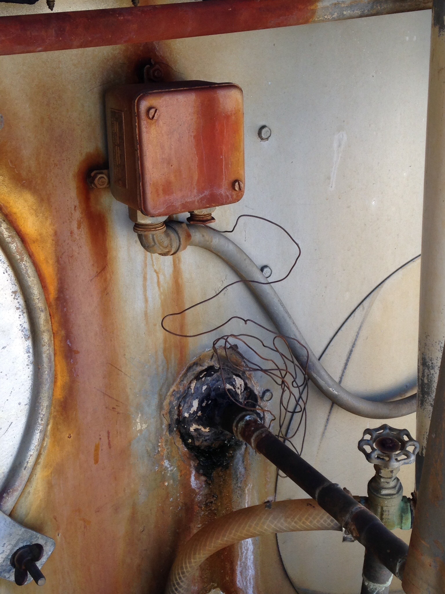 Yes, that is a coat hanger installed in some mishappen way to keep whatever this system does moving forward. I had a good laugh imagining the repairman trying to install it, moving it, bending it, welding it…until it worked. A coat hanger, that was the key element that makes this huge mechanical system work. And it was huge – I saw it on top of a 5 story building working loud and hard.