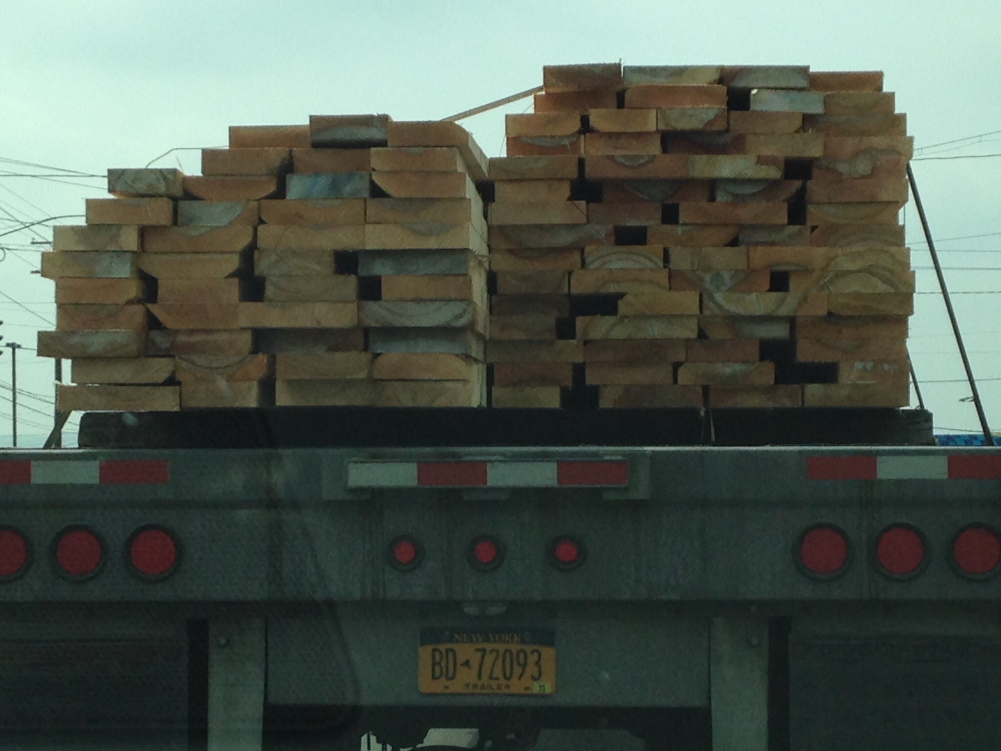 It’s one of our favorite things – wood. We were driving down the highway and ended up behind this truck. It looks like this lumber is on it’s way from the sawmill, being transported to some lucky wood worker who is going to create marvelous items!