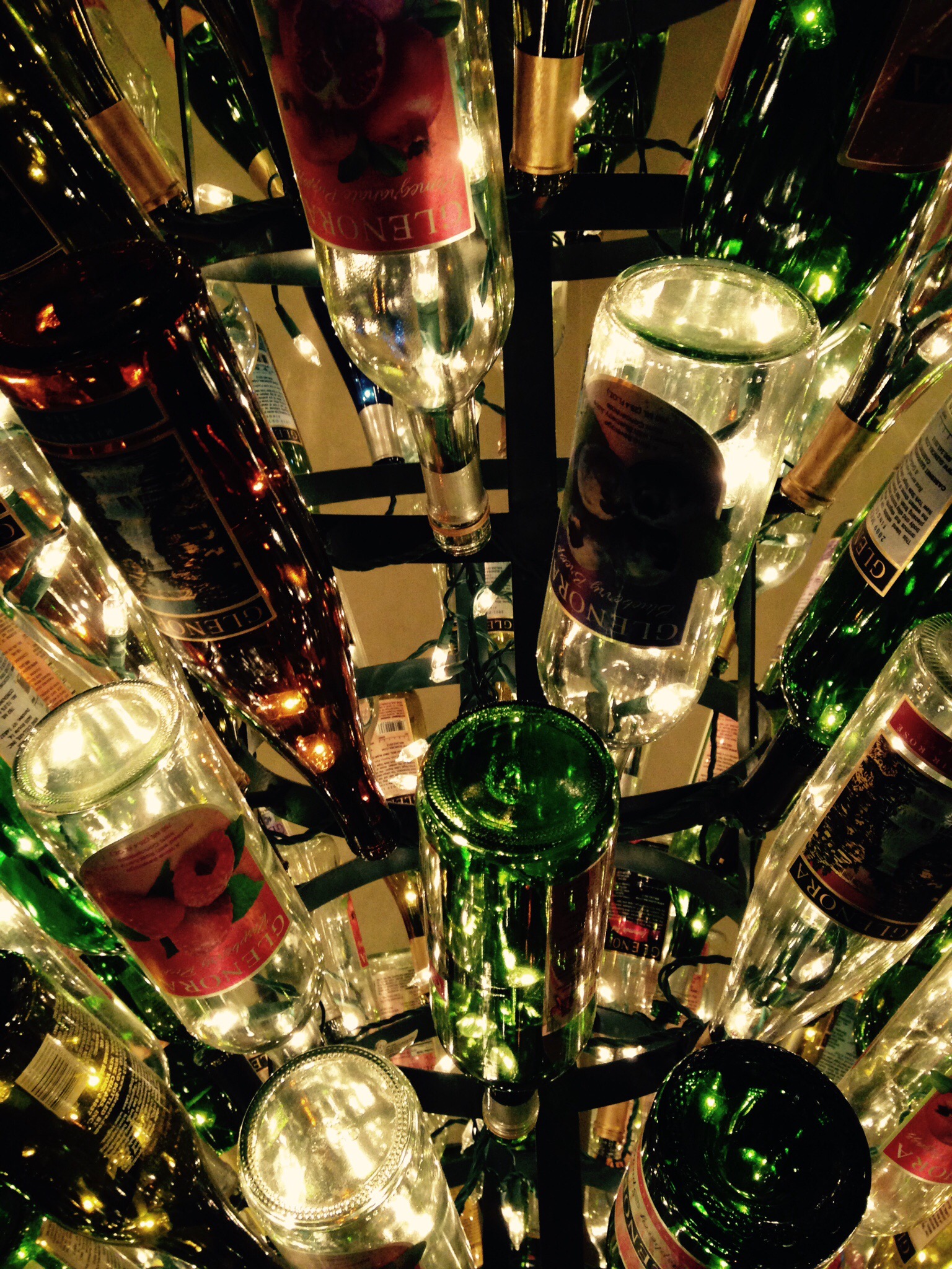 This bottle sculpture appeared at a vineyard we visited recently. It beautifully highlighted the empty remnants of many celebrations…weddings, anniversaries, retirement parties, family gatherings. What a great way to transform a throw away item into a fanciful display.