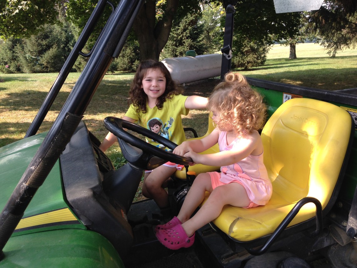 Do you remember how much you wanted to drive when you were a little kid? What a thrill it was to sit behind the wheel of a vehicle and dream about being in charge? You can see in the smiles of these two adorable little girls how much fun they anticipate having as they ride with thier Grandpa. Hooray for sharing the joy of children for something we take for granted as adults.