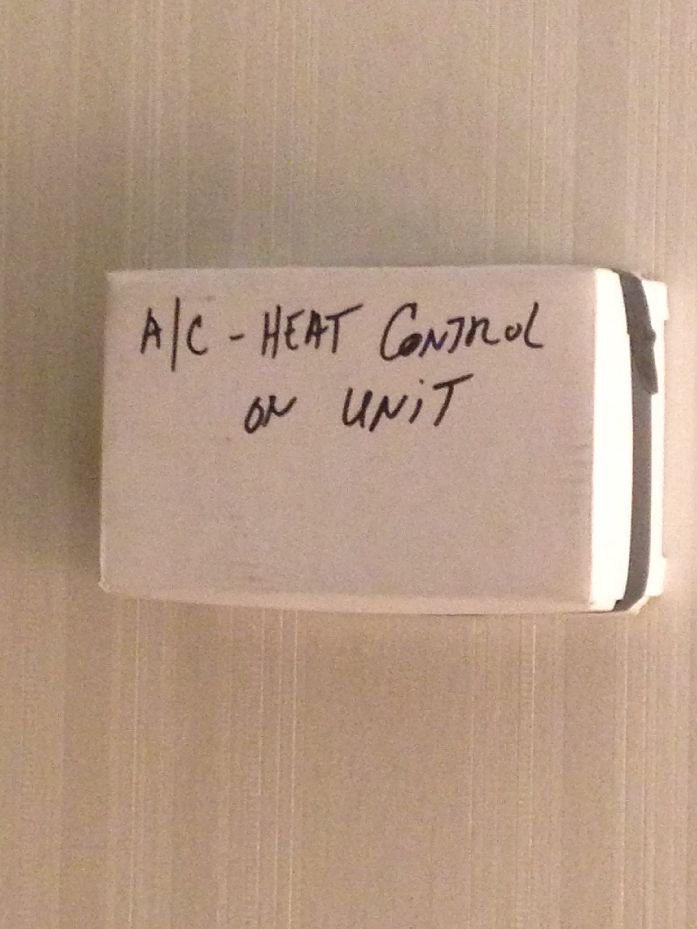 In a recent hotel room, this make shift box greeted me one evening. I think it was someone’s great idea for hiding the thermostat and pointing guests to the register under the window. The room was clean (I think) and I was safe, but other than that…well, you can make your own assumptions based on this photo. And no, I do not plan to stay in this hotel again.