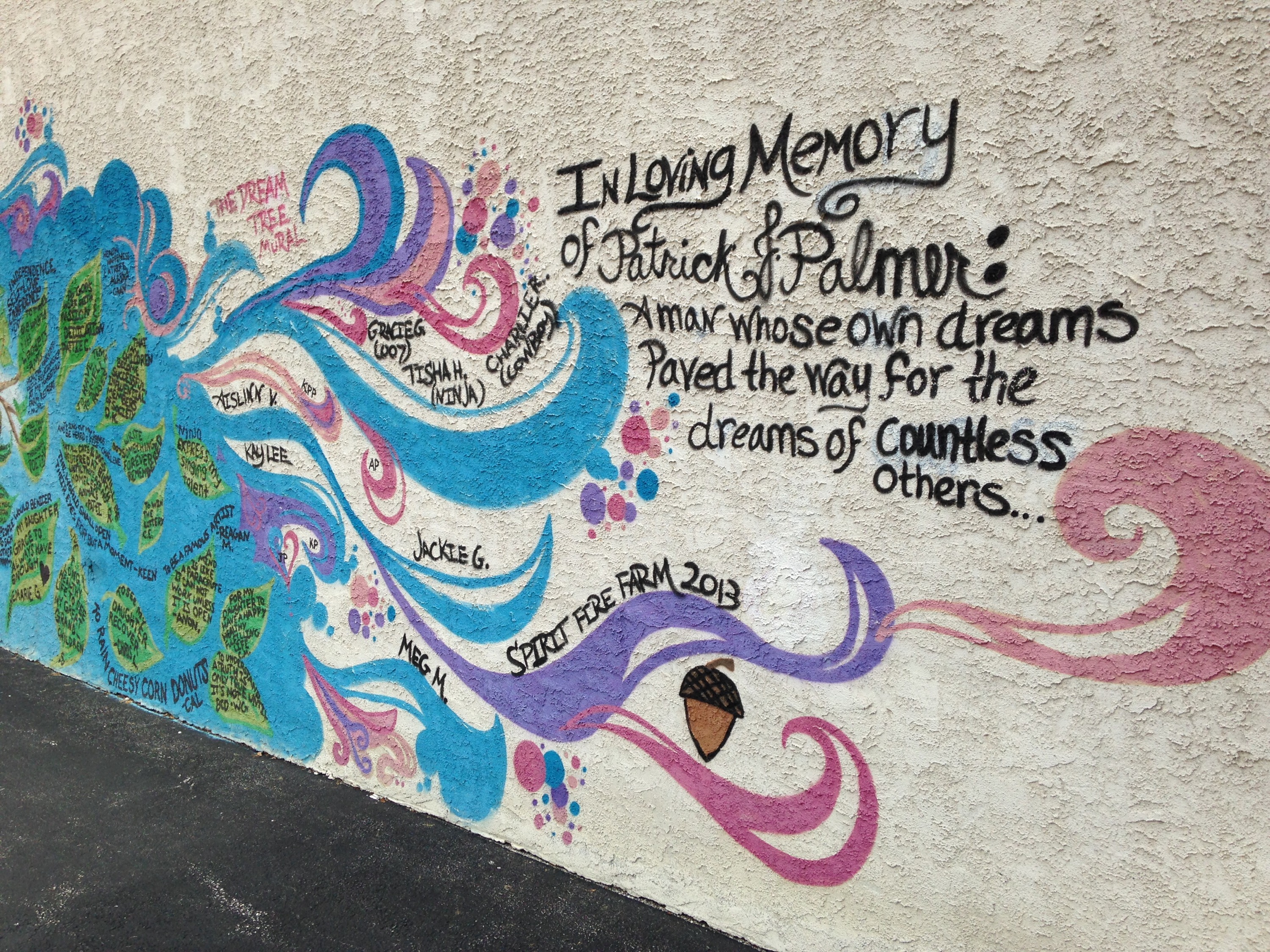 I found this wall art on the side of a building in Valley Forge. The entire side of the building was covered with this contemporary image of a tree, but it was the dedication that caught my eye. I do not know who Patrick Palmer was, and yet this mural tells it all.