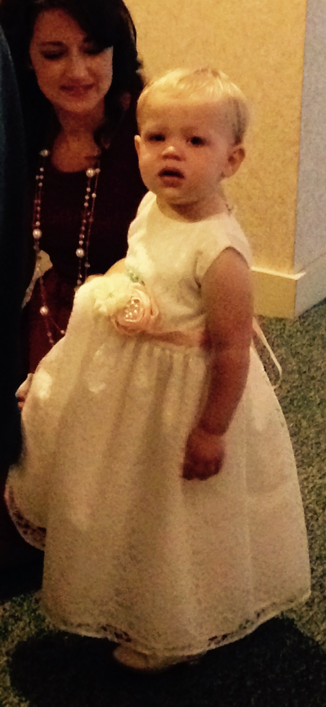 This is Miss Mary, a very adorable flower girl. Of all the things she liked about her outfit, it was her shoes she loved best. Her Mom told me she wore them at home all the time. She is pictured here with her Aunt, who actually helped her walk down the aisle…ok, it was more like a carry, but both went down the aisle together.