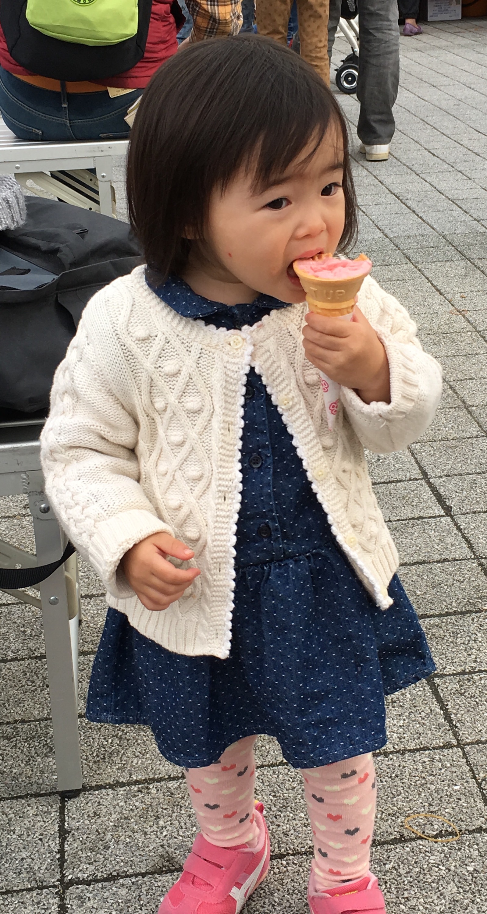 Yet in this instance ice cream was the great unifier! Thank God for the person who invented putting it in cones so we could eat it with our hands. There is something more universal than fear…and it is ice cream. This little girl enjoying a yummy pink strawberry cone made me want some; my husband was gracious enough to stand in line and get me a cone of my own! So she and I ate our ice cream, each savoring the flavor and fun…separated only by language. Ice cream, it brings out the kid in us all…