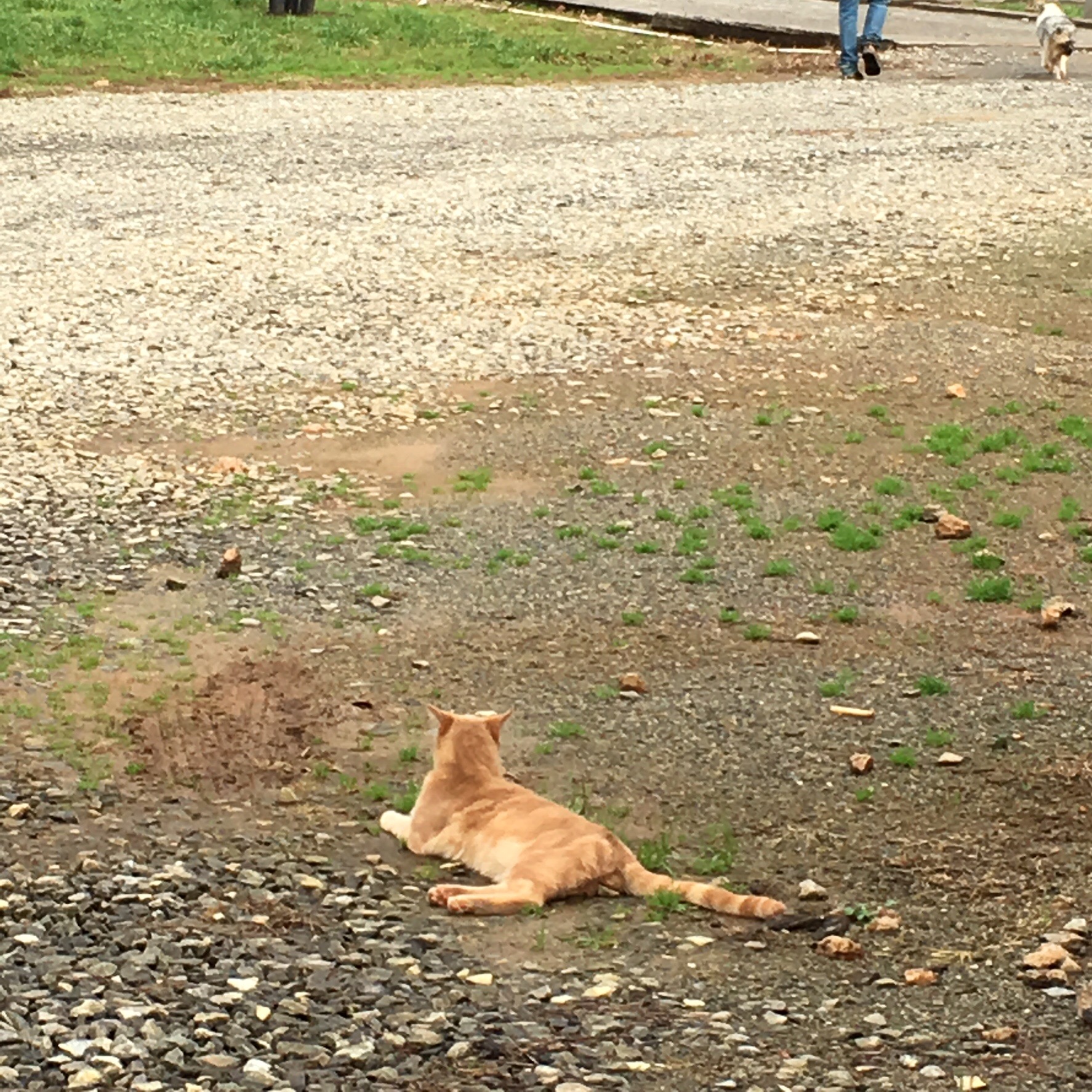 Meet the ultimate barn cat…no name needed, just call him Cat. His job is to guard the area and keep the mice at bay. Notice how seriously he takes his job. He doesn’t even move when the boss and the dog walk nearby. Cool, confident, completely in charge of his domain. Here he sits just enjoying the place he lives, the job he does, and the spoils of simply being himself.