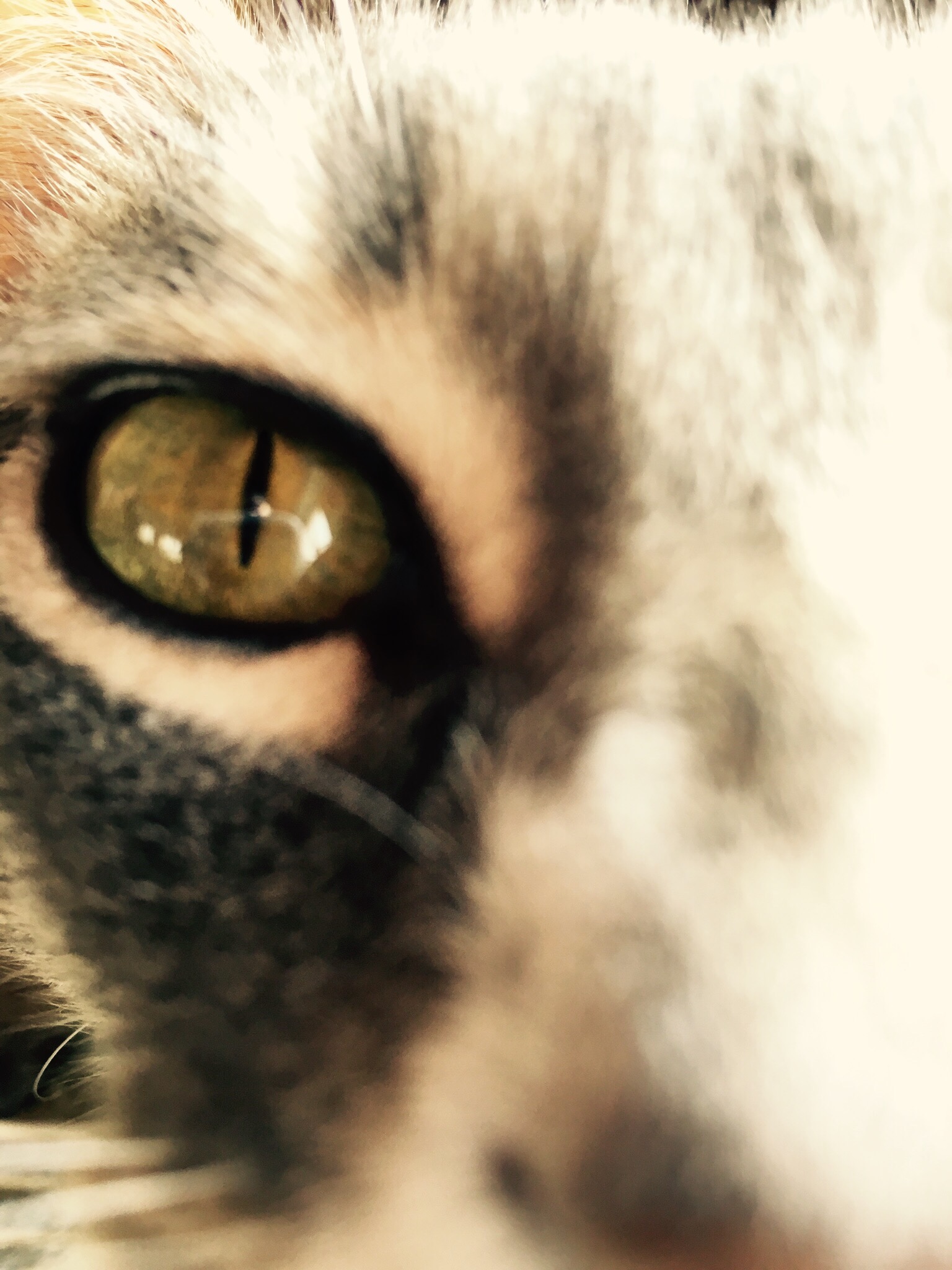 Curiosity killed the cat – satisfaction brought it back. Here you see our cat Artie being curious about my phone. I love how clear his eye turned out…it made me think about being curious.