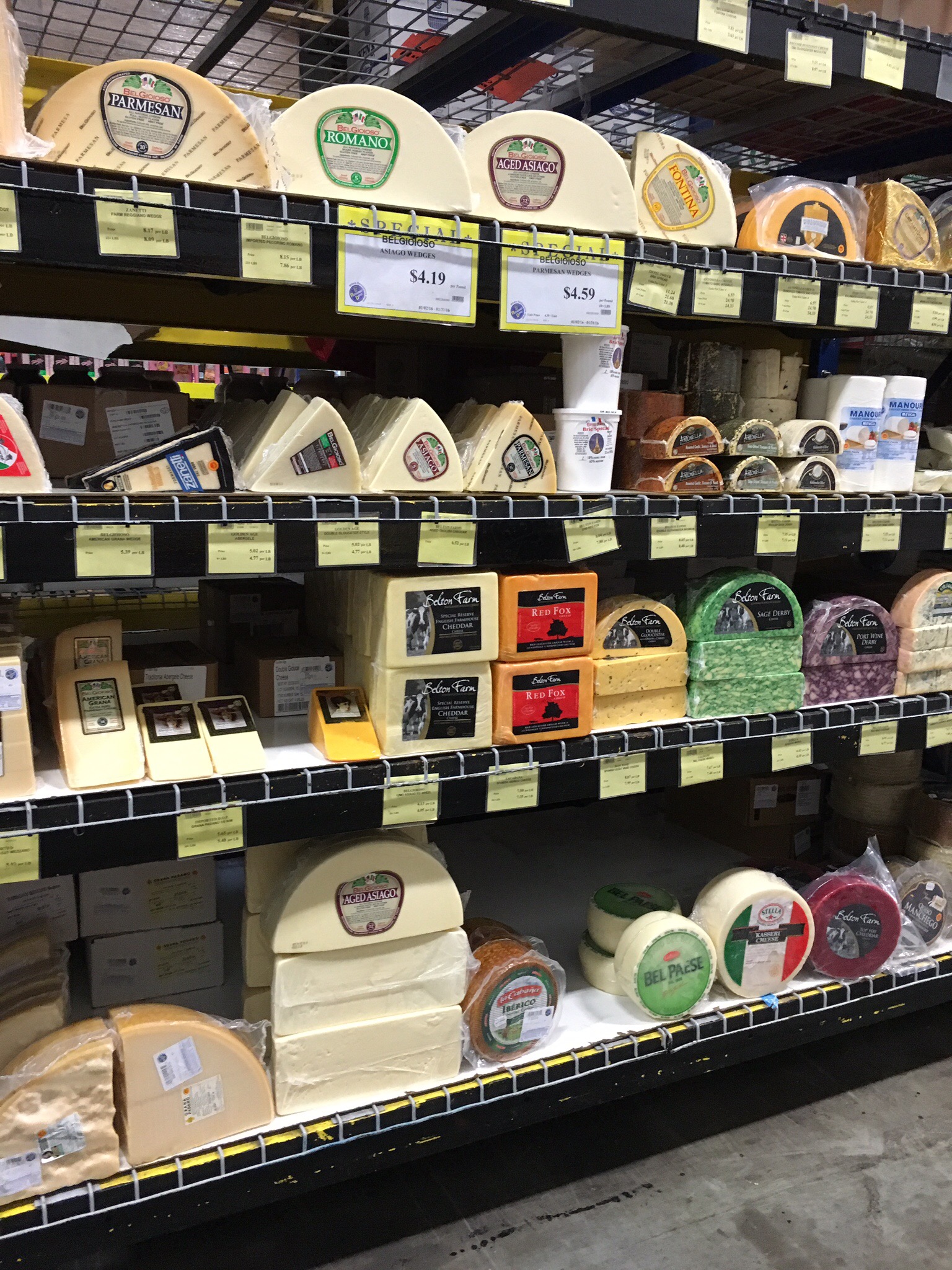Cheese, glorious cheese! This is the cheese section of a local restaurant wholesale store. And if you can leave this area without your stomach growling, then you might want to check your pulse. As we stood and read all the labels and varieties, our mouths watered and imaginations ran wild.