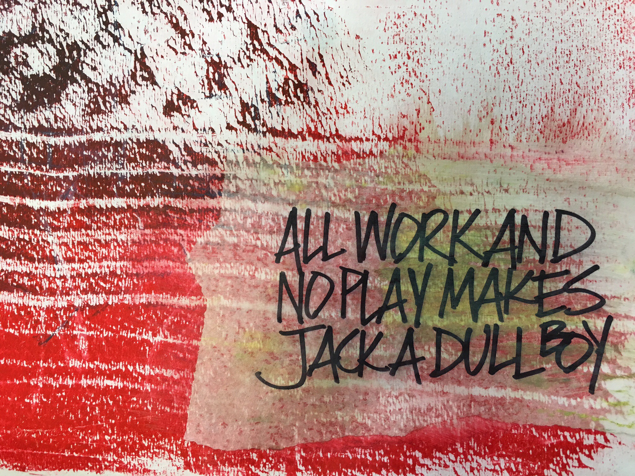 Today I encourage you to leave behind the certain and face the unknown. Turn off your work self and tune into your childish self. Have the courage to play well with others outside of your career…wiggle your toes in the sand, eat some marshmallows, create a portrait of your family with finger paints, then hang it on your refrigerator. Do anything that lets you forget the responsibilities of being an adult. Like the phrase in this piece says, all work and no play makes Jack a dull boy.