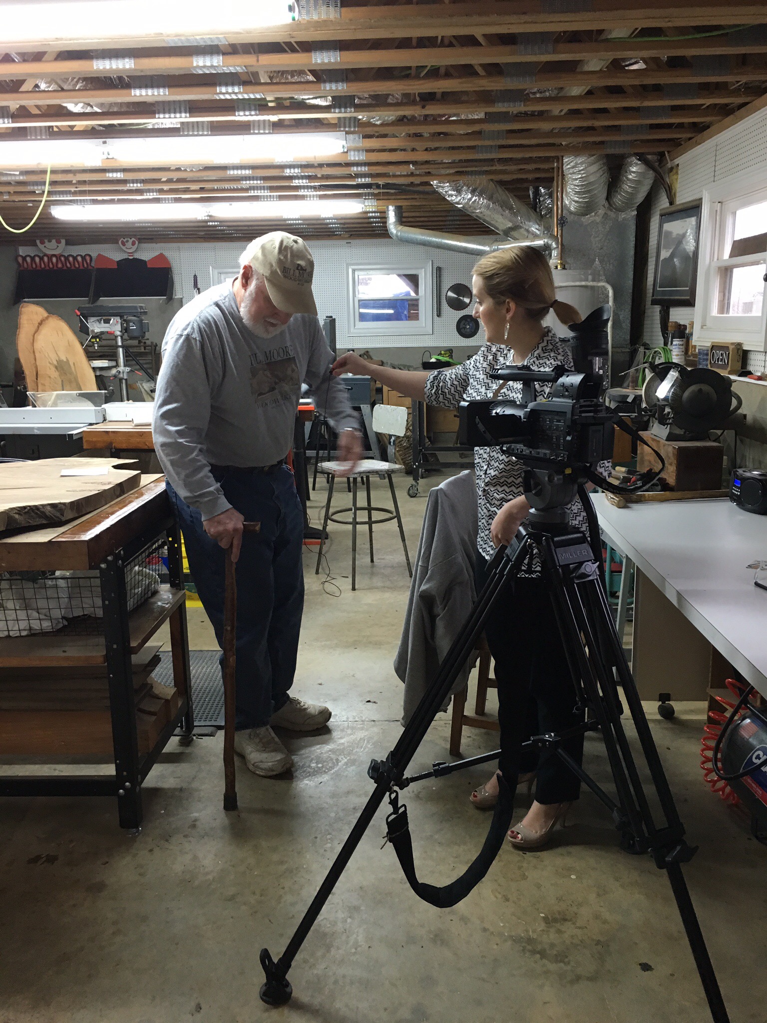 There are times when we get pleasantly surprised by life. Here you see Jennifer Grover, Producer for WSB-TV (WSBTV.com), putting a microphone on my Dad – Bill Moore – for an interview. She ended up spending over three hours in our gallery filming, interviewing, and learning about Dad’s work. Her job was to gather the footage for the People2People show. She did a fabulous job and the piece aired on March 5th & 6th.