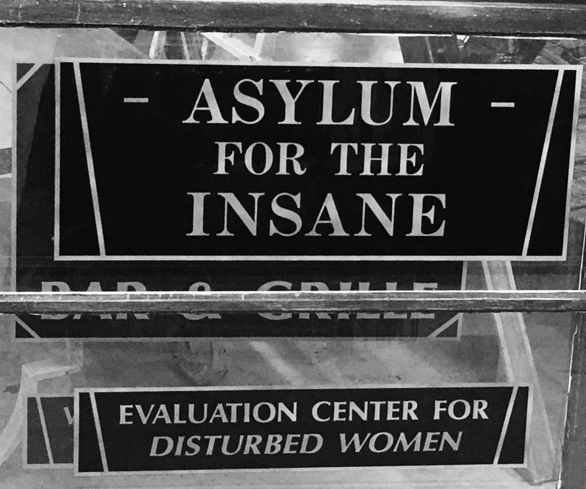 We saw this sign at an antique warehouse and I had to snap a shot. It made me laught that the asylum is for women only…what’s up with that? I guess when this sign was hung women who ‘acted up’ were a problem. I’m glad those days are far behind us and women are free to speak their minds…in most countries that is.
