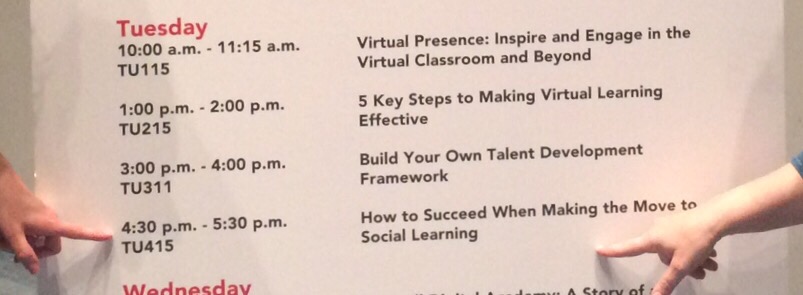 I am in Denver this week at the ATD International Conference (ATD.org). Here you see my colleague and I pointing to our session this afternoon. We have been planning for months and all our hard work pays off this afternoon at 4:30.