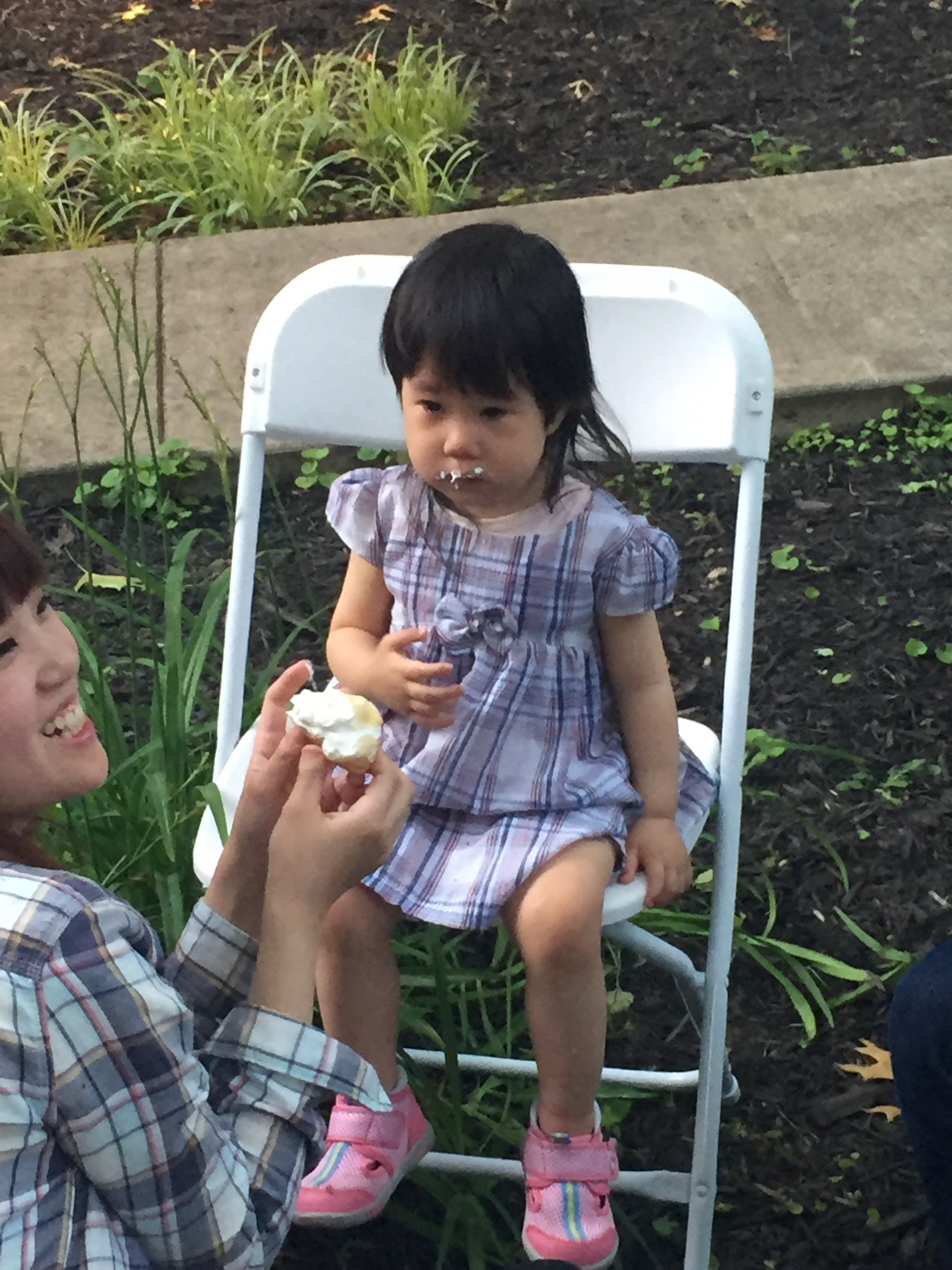 You know being that tired…here is Akari eating her first marshmallow. She has tears in her eyes from being tired, didn’t want to miss a thing, and yet is too tired to enjoy her first roasted marshmallow. She is two and this was her first trip to the US and the East Coast. She caught fireflies, pet our kitties, threw stones in the driveway and frolicked in the grass as she chased balls across the lawn. It was a big trip for her, and here she has had just about enough. Within five minutes she was headed up to bed for the night.
