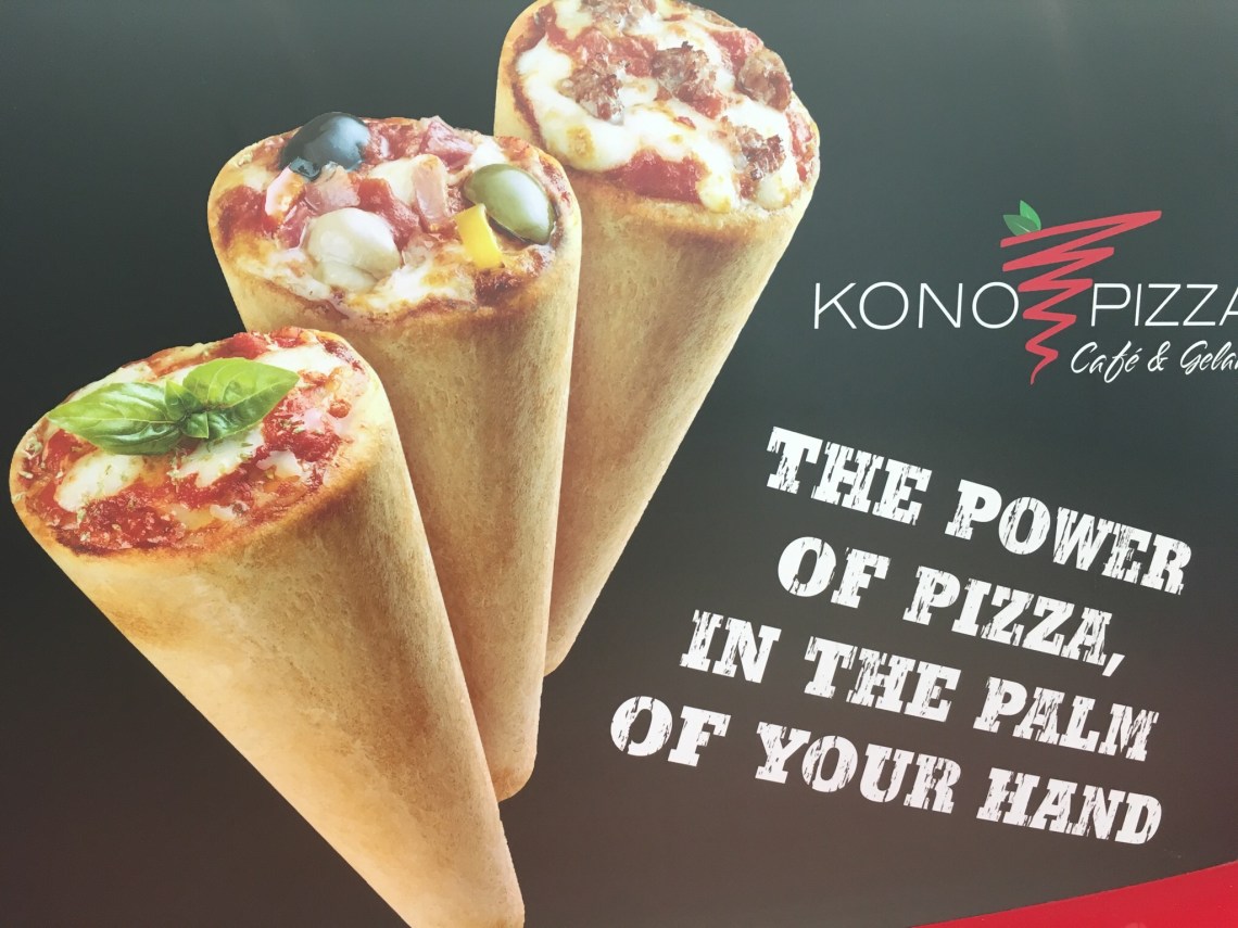 I did not know that I could want pizza in the palm of my hand, and yet here it is. Just when you think you’ve seen it all…someone rolls pizza into a cone and serves it up at the mall. No more messy slices or sauce overflowing onto your shirt. Here all you could want on your pizza comes in a neat cone. When I passes the kiosk that was selling this product, there was a line…Who thinks of this stuff?