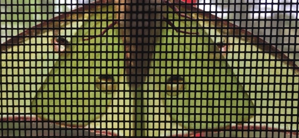 And yet, in this picture you see the underside of a lunar moth clinging to our screened porch. The light and color showing through the wings and the screen look natural and contemporary at the same time. I’ve never thought about what it looks like underneath. The color is rich and clear, and by looking under the wings you can see the delicate legs and body which serve as the center for all the rest. This view also allowed me to notice for the first time the pinkish line which outlines the wings. From the top this line has a totally different color. If I had never looked at the underside I would have missed all this detail.
