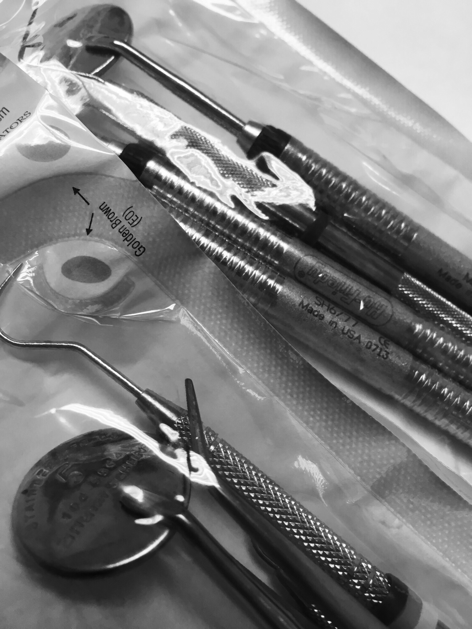 These are those packets that make my skin crawl…dental cleaning tools. These were waiting for me when I arrived to have my teeth cleaned. I have never been one to enjoy the dentist, no fault of the dentist’s; it’s just the gritty toothpaste they use to clean your teeth and all that metal scraping…even now describing it gives me the willies! I am glad to say my appointment went well, no cavities and no areas for concern. I am blessed to still have all my own teeth, and I hope to have them for decades to come.