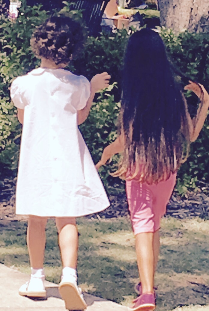 These two little girls were having the best time walking and talking at a local festival. We were enjoying the festival as well, and ended up behind them for several minutes. They giggled and chatted and pointed and talked without realizing anyone else was around. They were intent on each other and enjoying themselves, no matter what. They look so different and yet seemed to have so much in common. Both sets of parents turned around several times to check on the pair, only to leave them alone and to themselves.