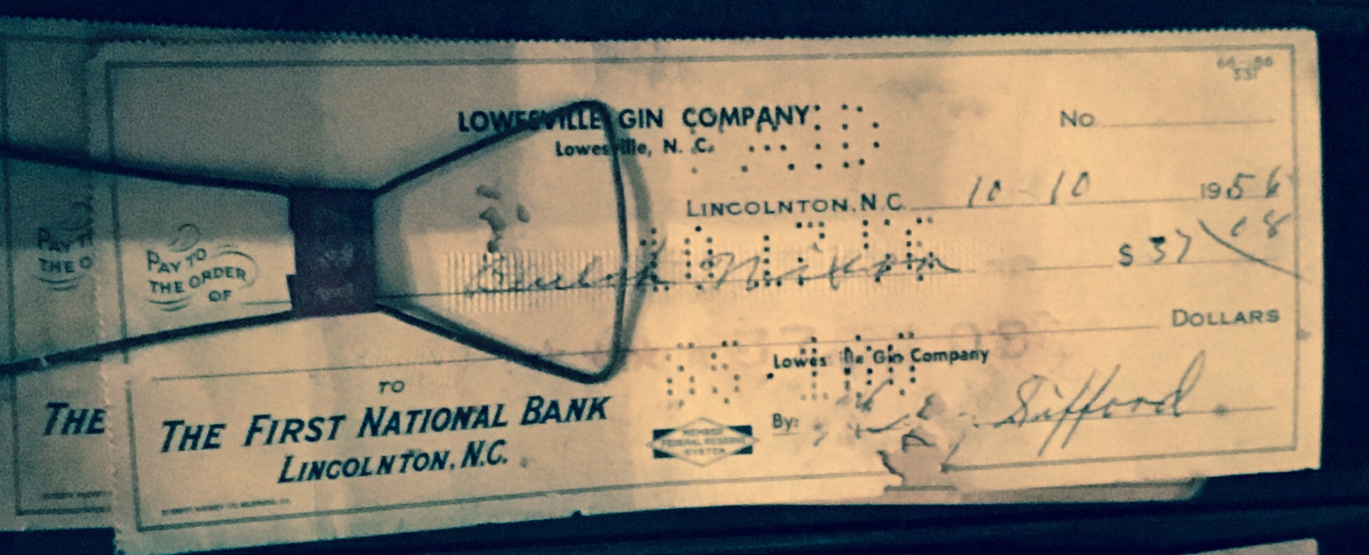 In 1956 this check was issued for cotton. It was payment given to a farmer for the crop he had processed at the local Cotton Gin. To us it might not seem like a lot of money, yet to him it may have been the difference between life and poverty.