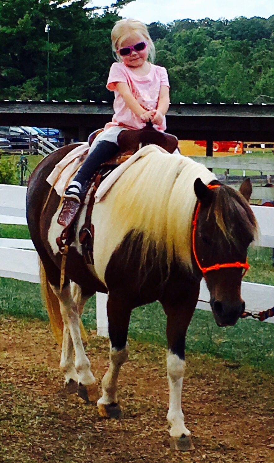 Do you remember what it was like as a little kid taking a pony ride? Chattering away with your friends as you ran to the line. The anticipation as you waited for your turn. The fun of watching others go before you and hoping that your turn would be here soon. Then your turn arrived…suddenly the anticipation was replaced by a combined sense of fun and fear. You grabbed the reins and sat down with confidence and exhiliration. Suddenly there you were doing the thing you had hoped for, waited for, wanted sooooo badly. You were riding a pony and loving it. The smile on this little girl’s face says all that and more.