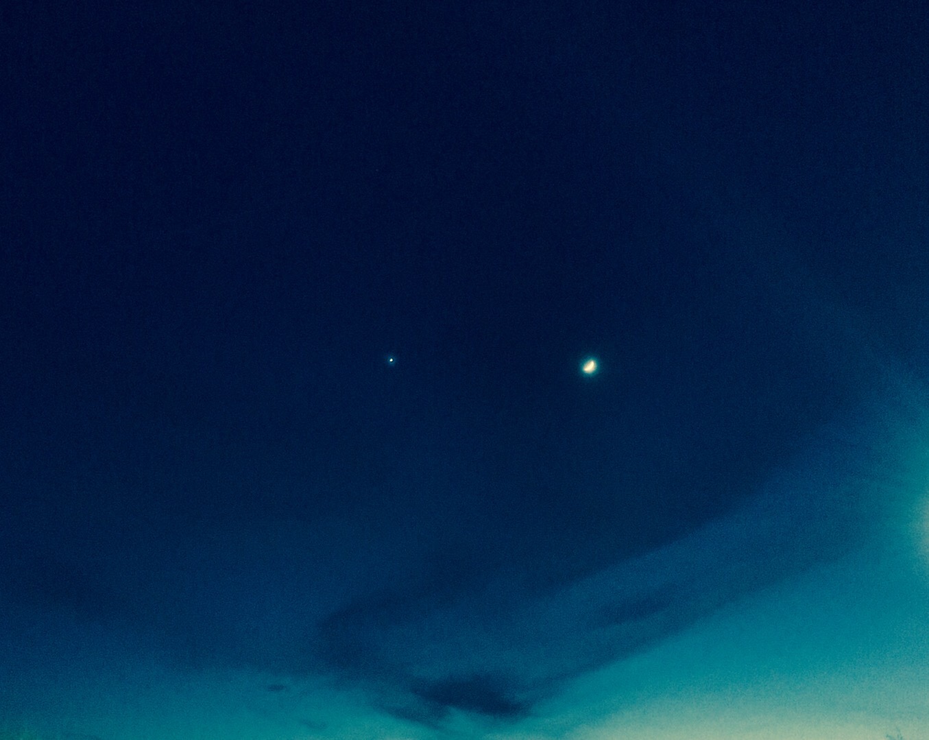 There was a beautiful sky when I was walking out of a store last week. The moon and star sat near each other, as if they were waiting for me to acknowledge their presence. I stood still and enjoyed looking up and seeing their splendor. Several other people were doing teh same thing, just standing and staring at the beautiful colors and sky.