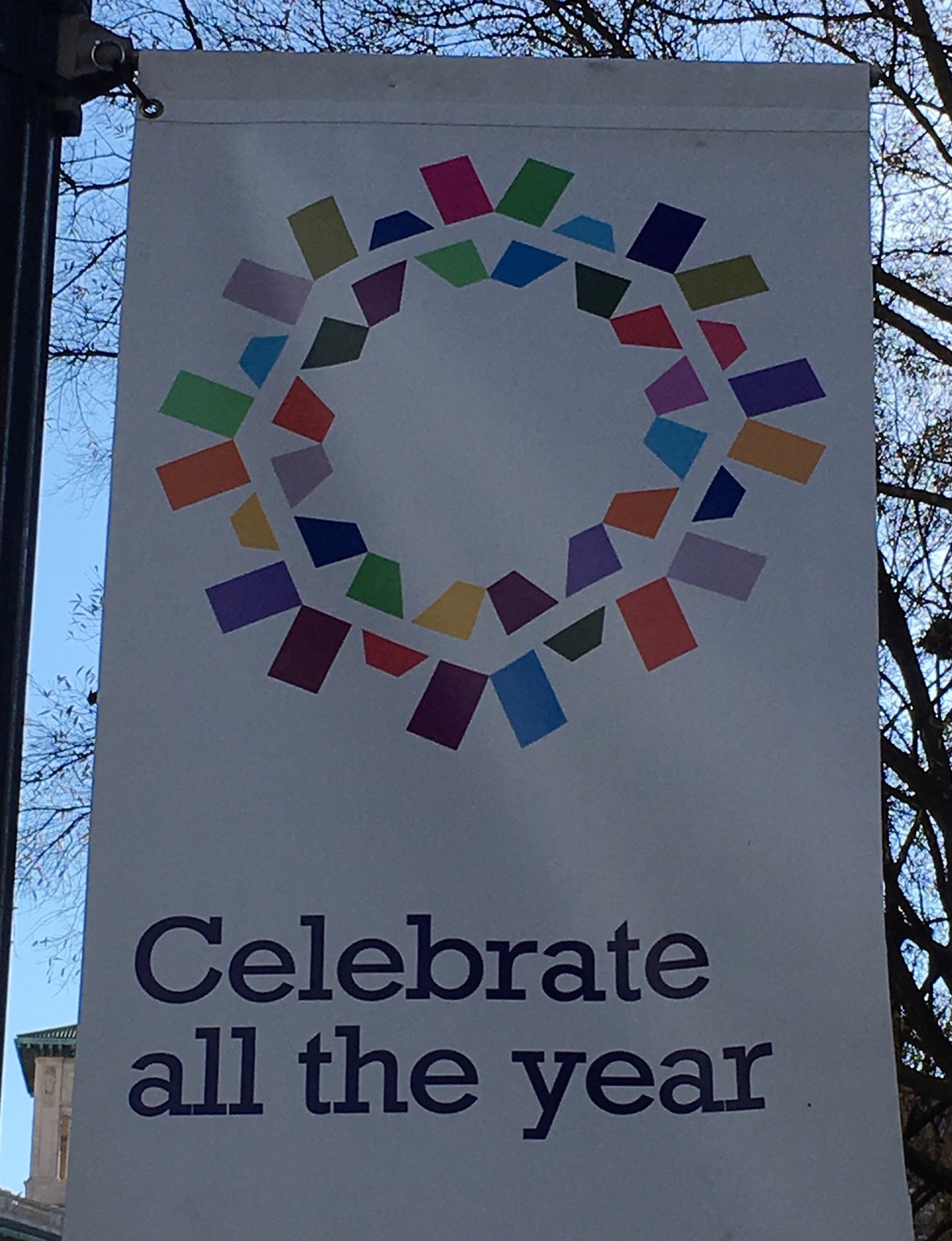 It’s Christmas Eve and the festivities have been keeping us all busy for months. Preparing, planning, buying, wrapping, cooking, cleaning, mailing, and celebrating the season with people we love and enjoy. Today’s message is said best by the banner we saw in downtown Atlanta…imagine a world where we all celebrated the season all the year. Imagine if we filled our hearts with love and joy all year, not just in December. Imagine if we put the commercial side of all this away and keept the emotions and happiness and peace alive all year long. What an amazing world that would be….
