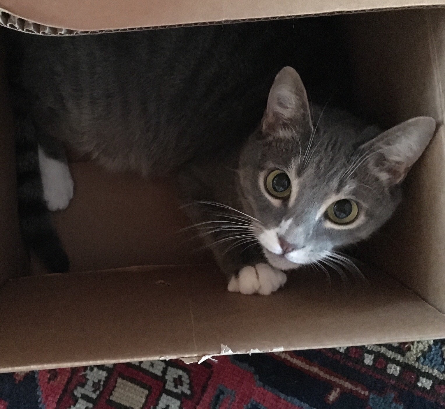 We spend all sorts of time shopping for the right gifts, wrapping them, unwrapping them, putting them together…and what is one of the BIG hits on Christmas Day? Playing in the boxes! Our cats are no exception to this time honored rule of post holiday frolicking. Here Artie drives himself looney playing in an empty gift box.