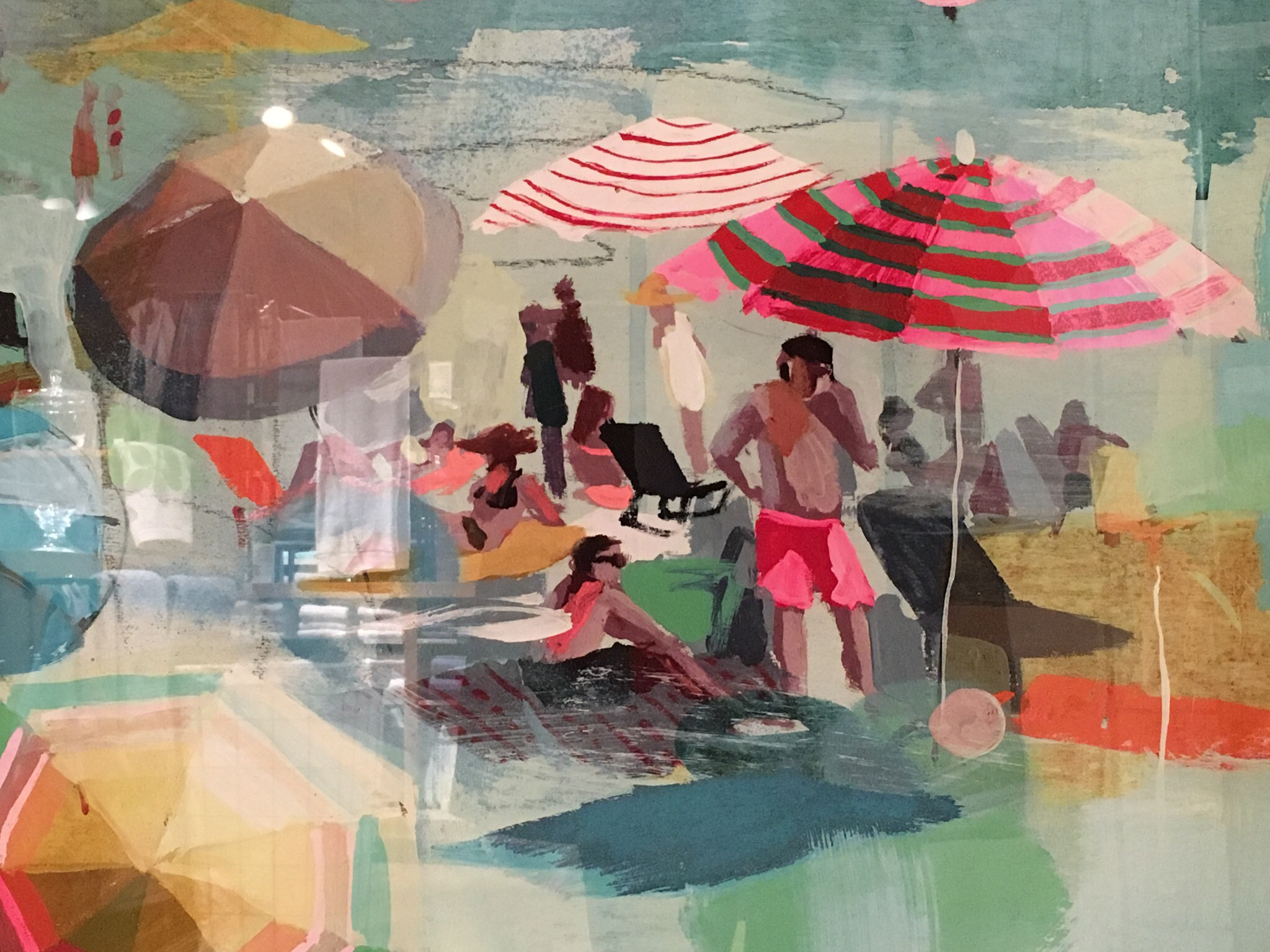 On a dull Winter day the colors of Summer are a welcome relief. As we put on warm sweaters, long underwear and sit under blankets, it can be hard to think about wearing a bathing suit or relaxing under a bright umbrella on the beach. This abstract work was a reminder to me that just as the day follows night, the Summer will follow Winter.