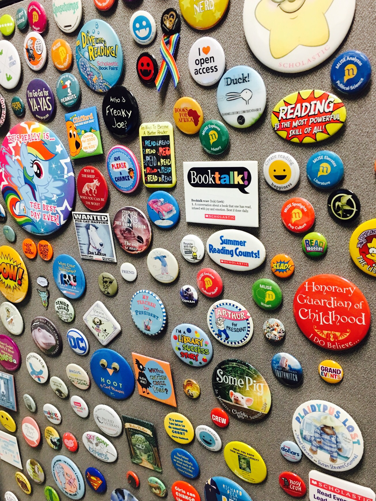 I truly love to see people express themselves. No matter who they are, or where their circumstances have led them, people always find a way to express who they are and what is important to them. I was in an office building today and this cube dweller had their area covered from floor to ceiling with buttons. I stopped to take a quick glance and all these buttons have to do with books, or characters, or some form of the written word. As this employee stared into their computer screen they were simultaneously advocating books and learning. I enjoyed the irony of an automated office endorsing books. I also enjoyed this person sharing with everyone who walked by their unique way of sharing their passion.