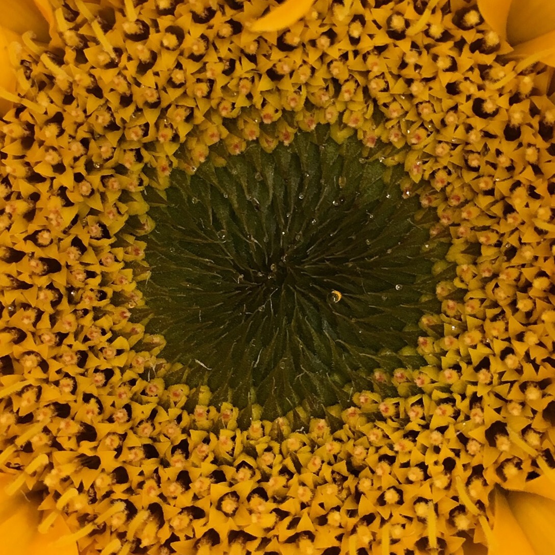 This is the center of a flower, a miniature sunflower to be exact. Everyone notices the beautiful petals, the color, the iconic elements of this classic. I must admit I have never focused much on the center. Though it is the center of it all, it too often gets overlooked.
