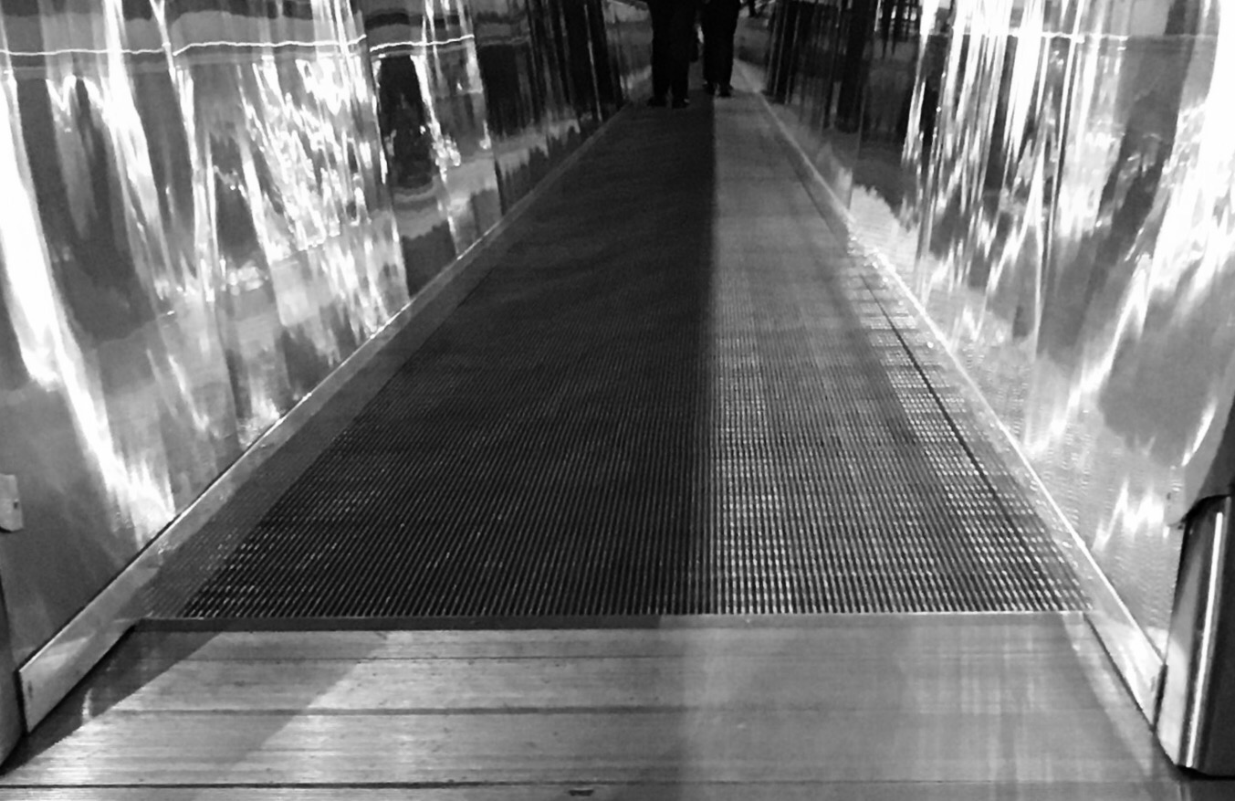 So back to me on the moving sidewalk with my colleagues. We were having a very intersting conversation, so I turned around to see their faces. It was a very long sidewalk, so I had time…or did I? The next thing I know I was falling backwards, rolling on the floor with my feet over my head. Thankfully I was wearing tights with my dress, otherwise the entire airport would have seen my nether regions. I actually did a backwards somersault then stopped rolling. My colleagues were horrified and came to my rescue. I sat up and laughed a deep gut laugh. I was delighted at my stupidity…follow the instructions stupid. I mean REALLY? Rolling on the floor at the airport at the end of the sidewalk? How much of a ding dong can you be? This was not the stupidest thing I had ever done, but it made my stupid list. So much so that when I saw this sidewalk today it reminded me of my blunder.