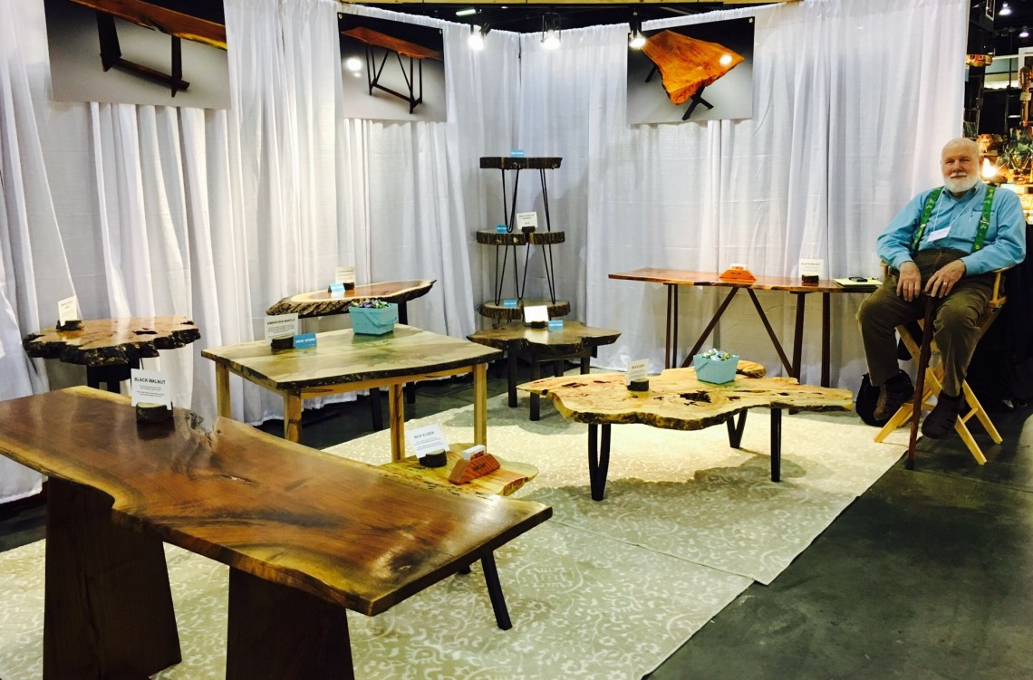 Here you see my Dad, Bill Moore, in his second national craft show. He will be eighty-six (86) next month. He takes away all our excuses for not doing anything because we are tired and feel old. He is a wood working artist. He may hurt, or feel bad, and his body parts may fail him…but he is still out there creating beautiful work. He gets tired and wants to stretch, his legs may hurt, and he needs a stick to help him walk…but he is still out there meeting customers and selling his work. He may want to sit and rest and as actually earned the right to do both…but he still gets into his workshop and builds amazing furniture to prepare for the show, his collectors, and his family.