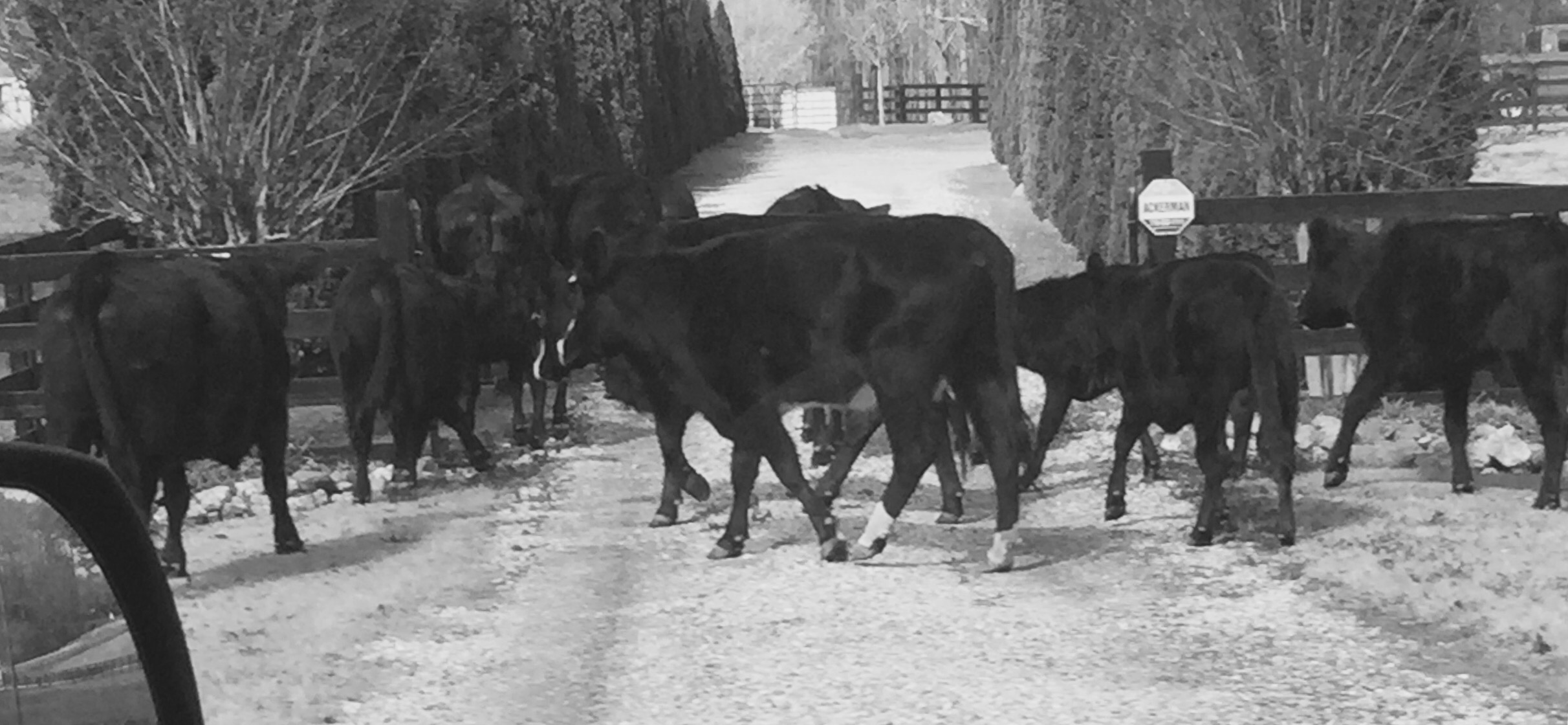 When you leave in time for your appointment, you may encounter a country traffic jam in our neck of the woods. Here you see our neighbor’s cows deciding that they wanted to be on the other side of the road. There must have been a very important meeting they were required to attend for the entire herd to head that direction. My husband patiently waited as the farmer rounded them up and lead them home.