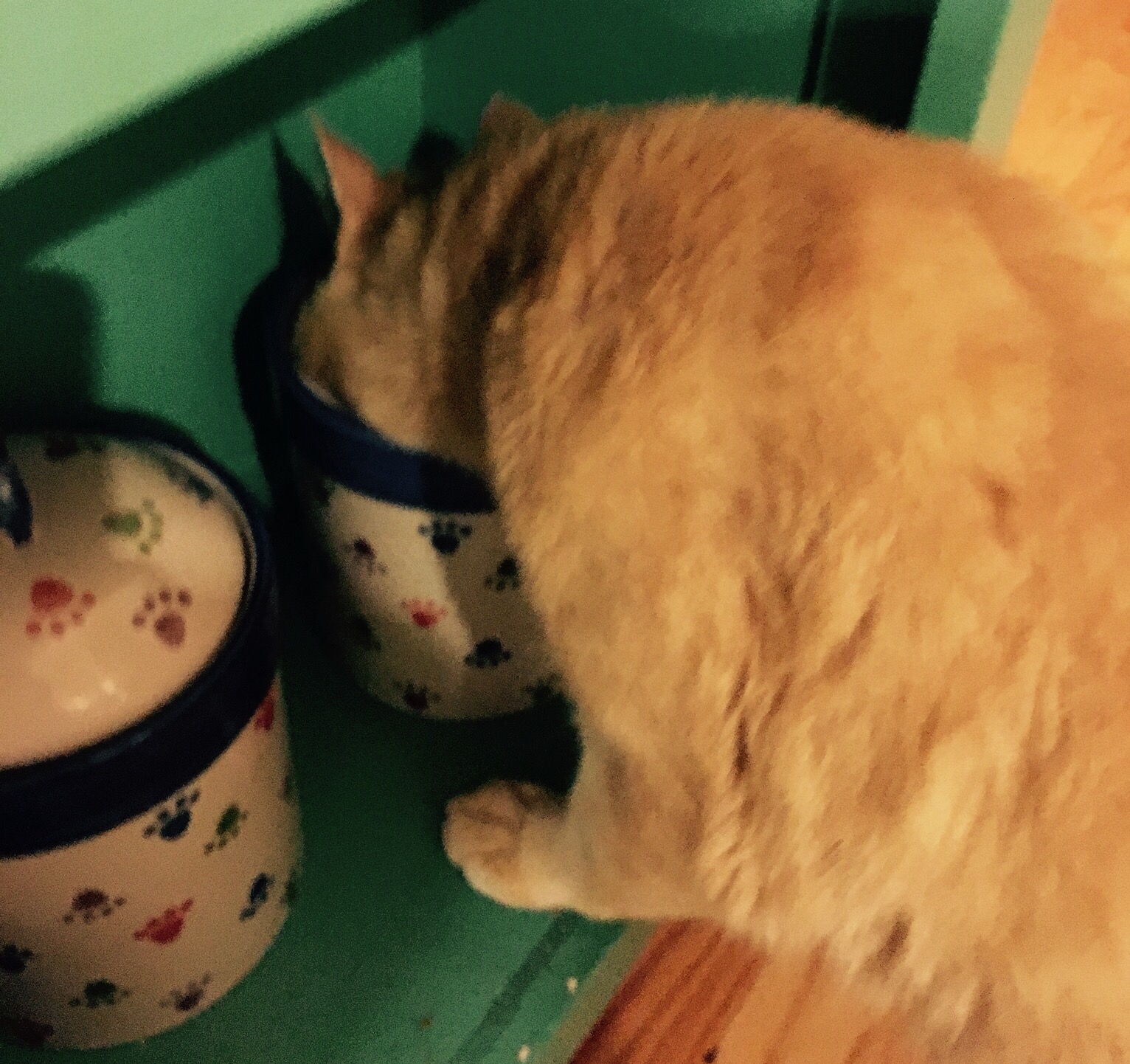 As the days get warmer, we sometimes leave the front door open so our cats can freely move in and out of the house. Our friend Persimmon, the stray who began visiting us this time last year, has also figured out that open door. He now comes in and out of our house, rests when he wants, moves from room to room, then goes back outside. He has also figured out that when our cats come inside, they get a treat. Instead of waiting his turn, he simply gets what he wants directly from the treat jar. This is a bold move, a hungry cat move, and a little bit unconventional …yet he got what he wanted. No one got hurt, and our cats just looked on in horror still waiting to get their treats.