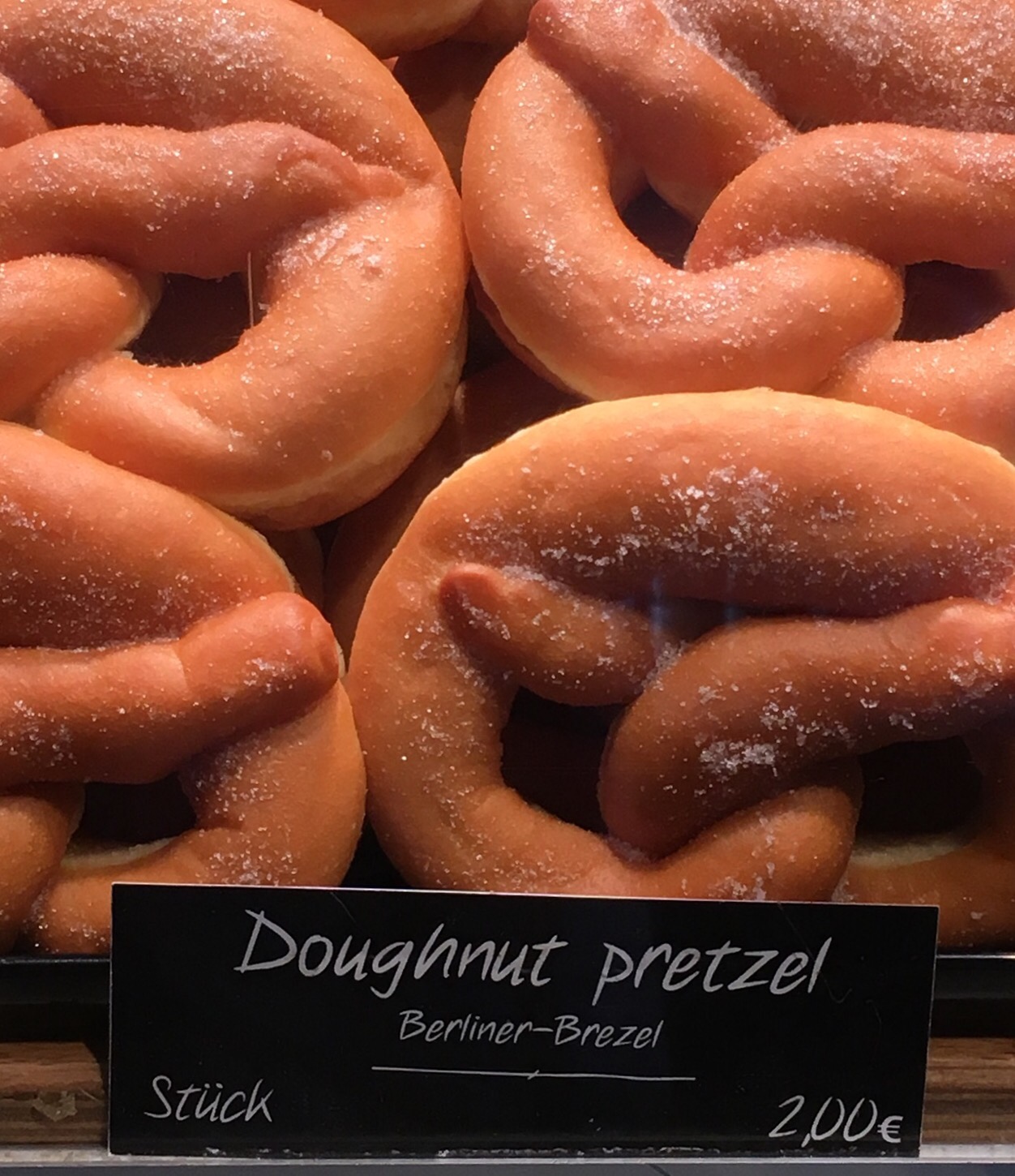 There are comfort foods, and there are decadent comfort foods. In Frankfort, Germany I found these at the airport. A doughnut pretzel, the best of both worlds. You get the wonderful size and shape of a pretzel with the sugary goodness of a doughnut. The carbs and gluten are well worth each bite. There was a line twelve people deep waiting for these. Who wouldn’t want to board their flight with this in their tummy? Airline food doesn’t have a chance when this bakery has three locations at the airport.