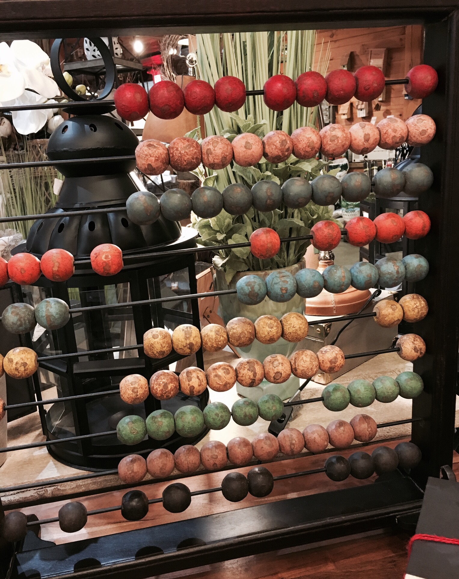 The abacus was the way my Dad learned how to multiply. This colorful version of that ancient tool is being sold as a decorative item in a furniture store. How far we have come from when this was the only way to count. Last century children learned how to use this tool as part of their education. It is still used in some countries as a consistent ‘calculator’ without electricity. I am not sure how many modern day, American school children would even know what this was, let alone that it is still being utilized in other parts of the world.