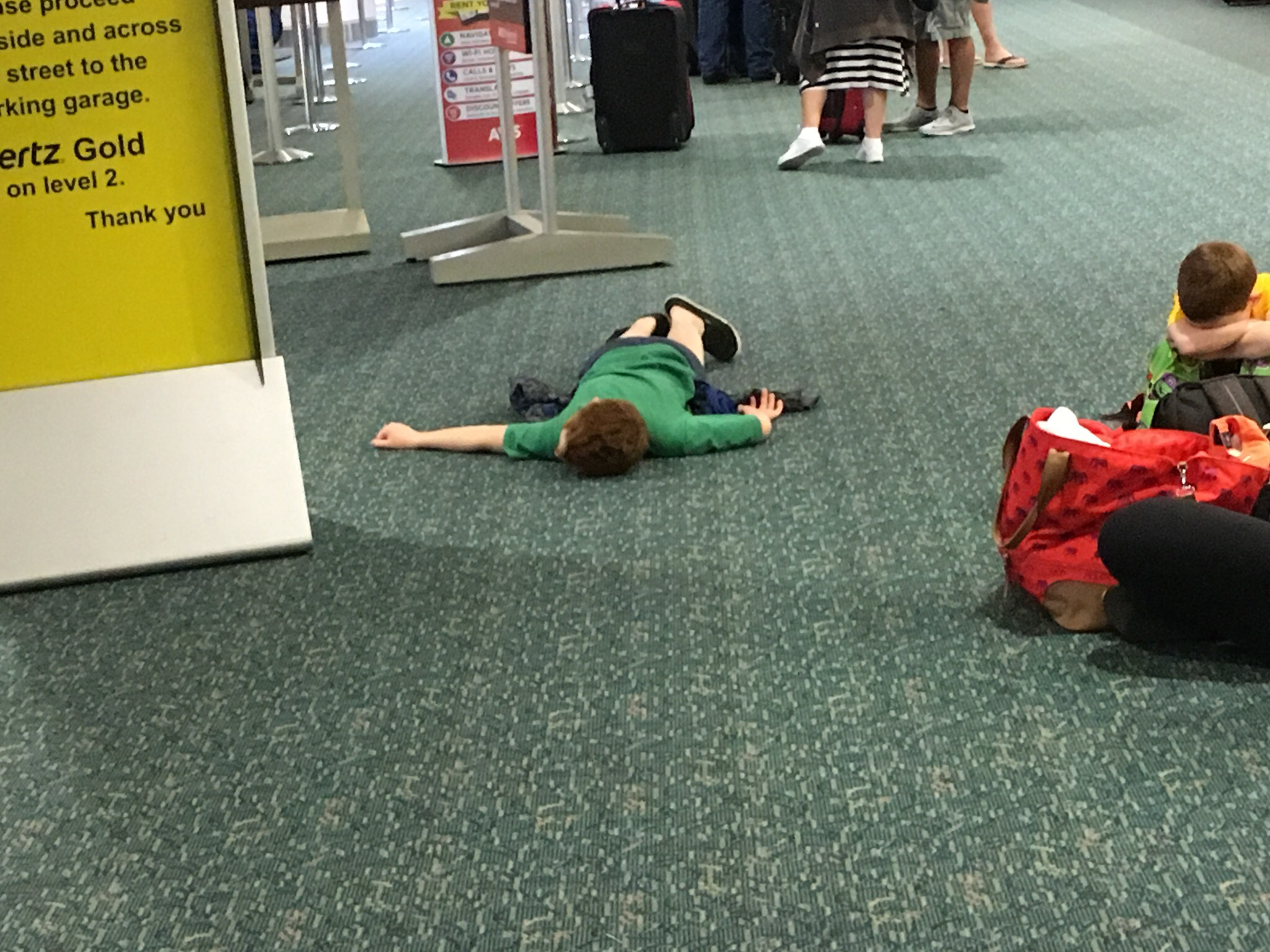 Have you ever had one of those days? When you just can’t take anymore and collapsing is your only option. This young traveler gave up in the rental car section of an airport. I had to walk by him to get to the counter, and I could totally relate. His brother is to the right with his head hung low, ready to rest. Both young boys have had enough and their posture shows it. The license of youth is that it allows you to express yourself without hesitation or self consciousness. They are both tired of traveling and nothing – not even being in a public space at the airport – can stop them from showing exactly how they feel. As I walked by I had to admire their exuberance and sheer honesty in letting everyone know what was going on in their world.